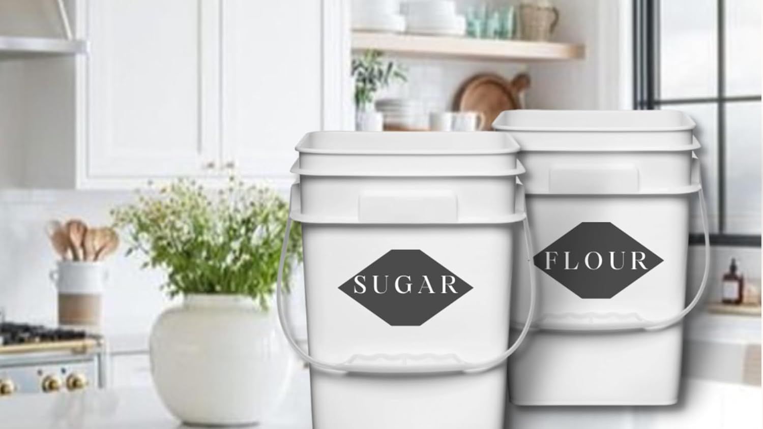 - Buckets good for storing dry food like beans, rice, flour, sugar, salt, pasta. Honey. Pet food. Livestock feed. Birdseed.
