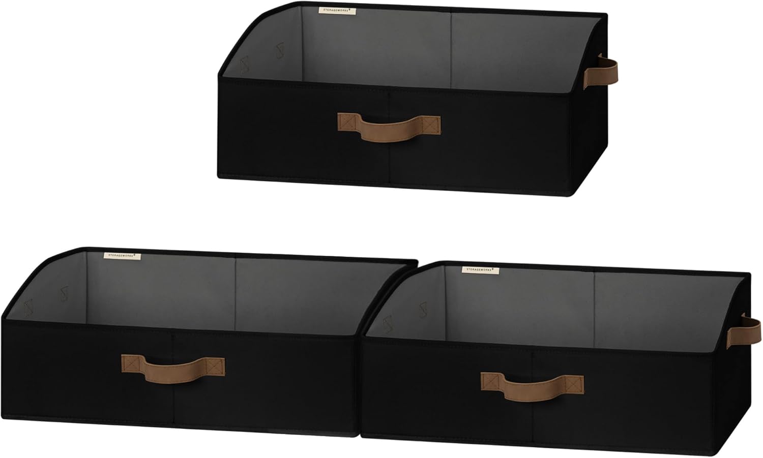 StorageWorks Closet Storage Bins, Trapezoid Organizer Box for Shelves, Fabric Clothes Bin, Foldable Organizing Baskets with Handles, Large, Black, 3-Pack