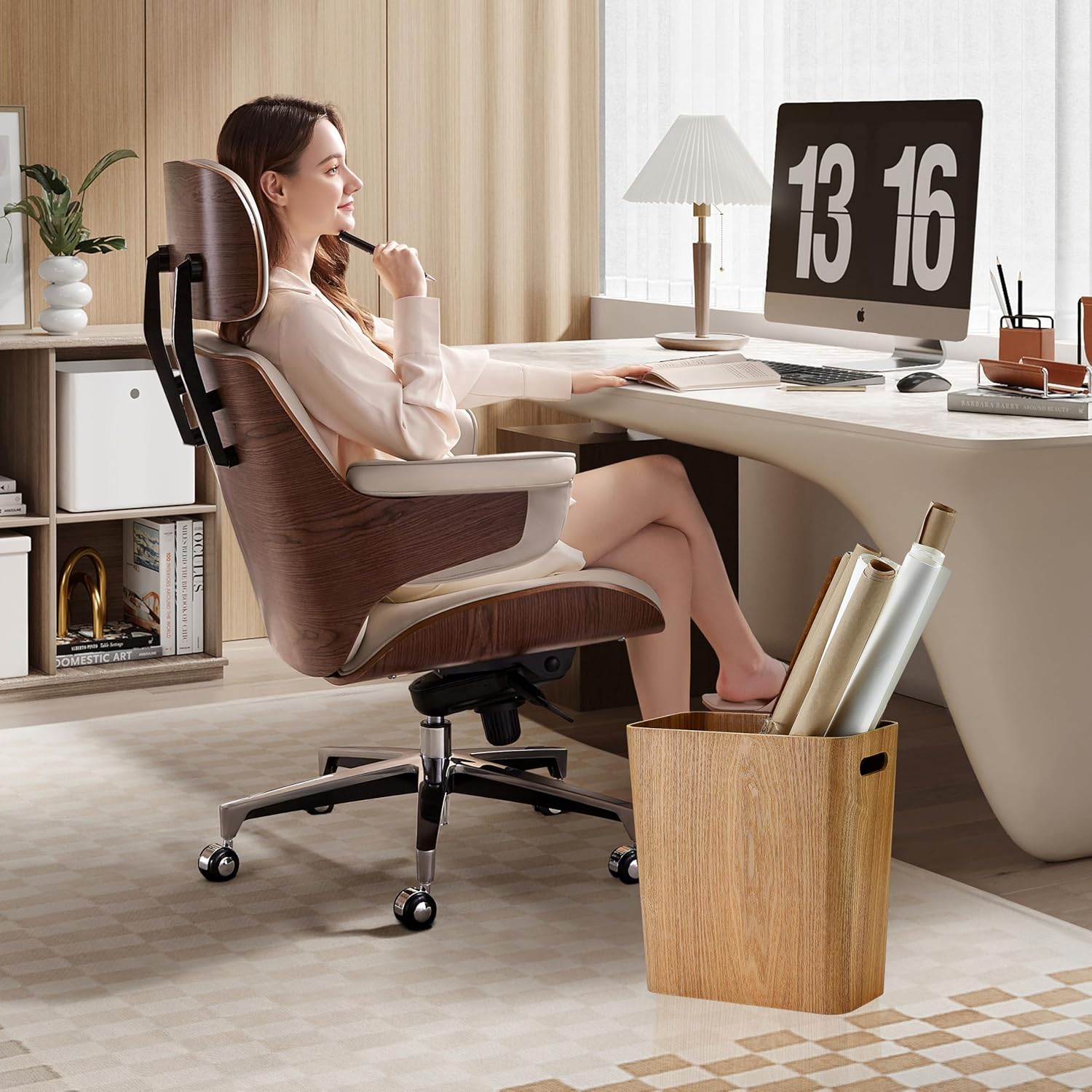 - Space Saving Under Desk Fit: At just 11.2" diameter x 12" height, this lightweight wood trash can tucks neatly under desks, nightstands, or in tight corners without sacrificing capacity (2.5 gallons).