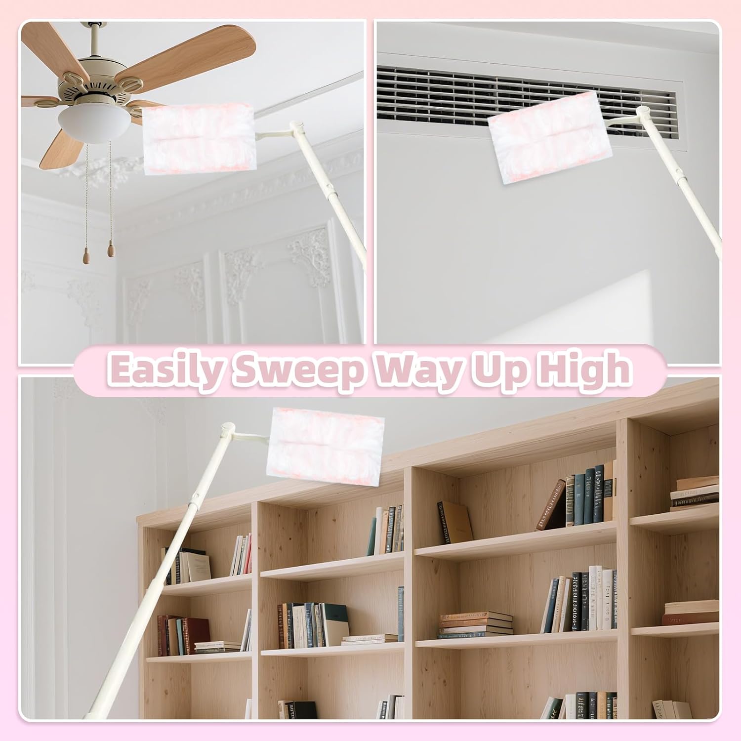 52 Count Disposable Duster Refills for Cleaning, 180° Dusters Refills Compatible with Swiffer (Pink, 50 Count Dust Removal Brushes + 1 Standard Handle + 1 Extended Handle)