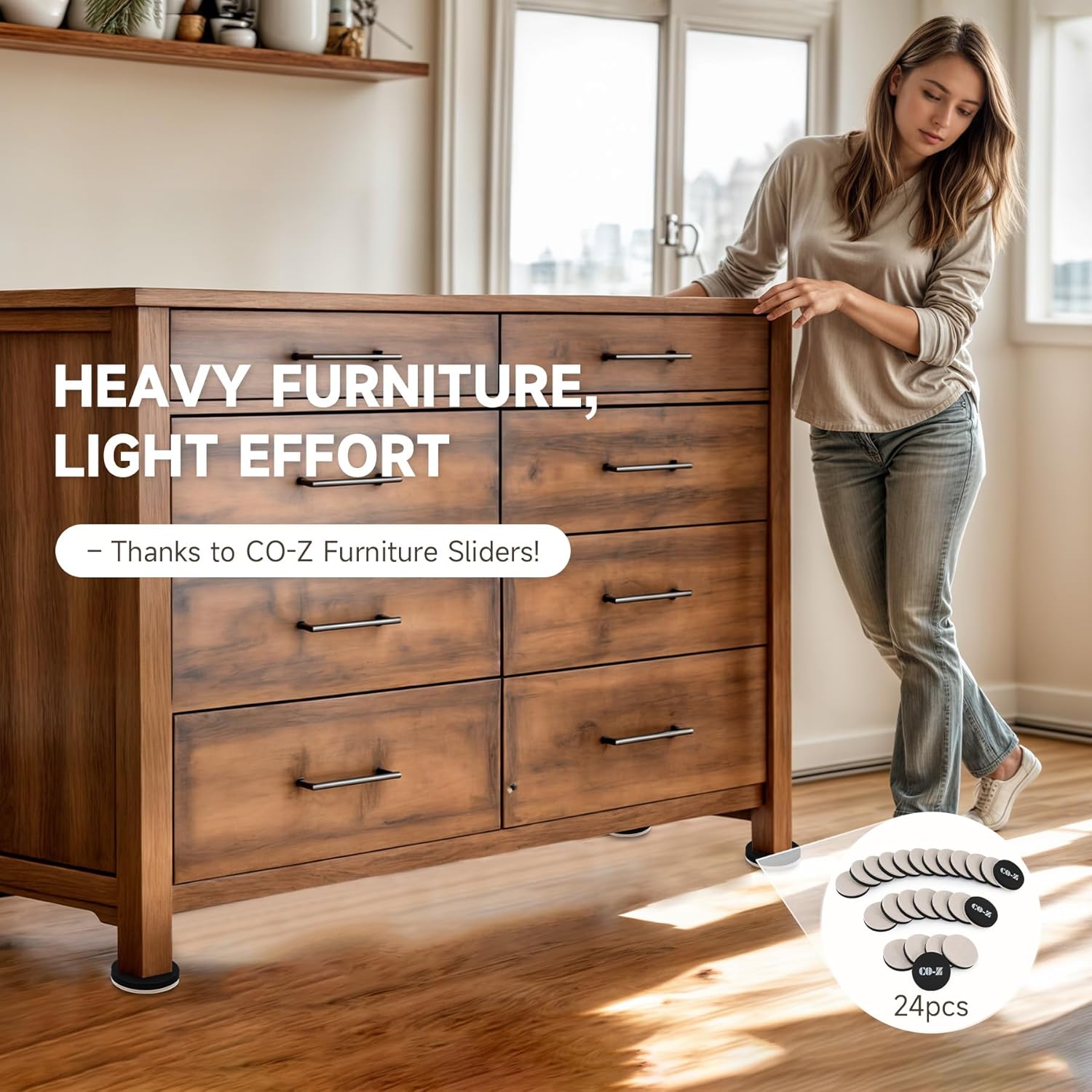- Heavy Furniture, Light Effort: This CO-Z 24pc felt furniture slider kit helps you effortlessly glide your furniture into place with minimal effort—no lifting, no strain, just smooth movement