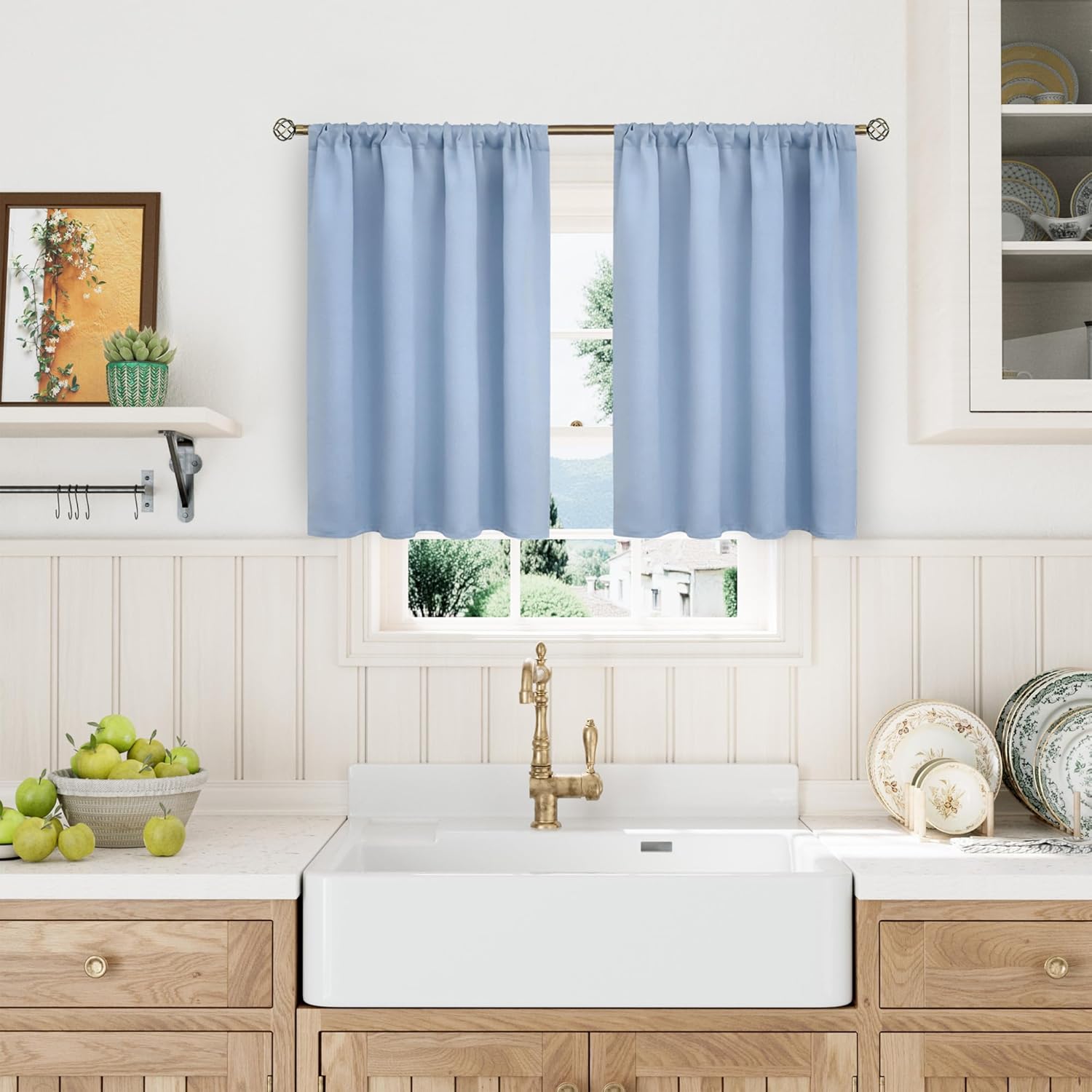 - Package Includes: Set of 2 baby blue blackout curtains; each panel measures 42 Inch wide by 40 Inch long.