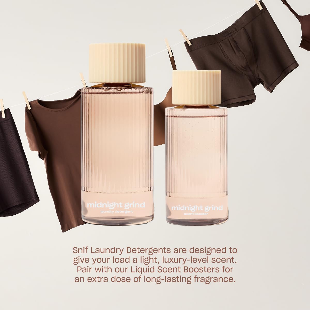 - MIDNIGHT GRIND: As bold as your favorite nightcap. The Midnight Grind Scent Booster’s rich, bold espresso scent elevates your spin cycle with a pour that’s stronger more delicious than the drinks at happy hour. With coffee, vanilla, chocolate, nutty accord, and citrus zest turns laundry day into a luxurious affair.