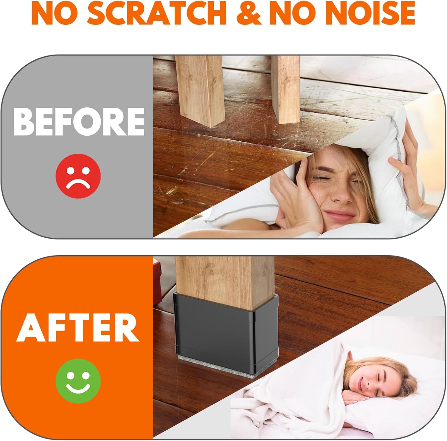 - Prevent Scratches and Reduce Noise: CHWM Clear chair leg floor protectors can protect furniture feet, wooden floors, ceramic tiles from scratches, reduce noise and prevent bumps. Felt pad on the bottom reduces resistance and allows furniture to move easily and quietly without lifting.