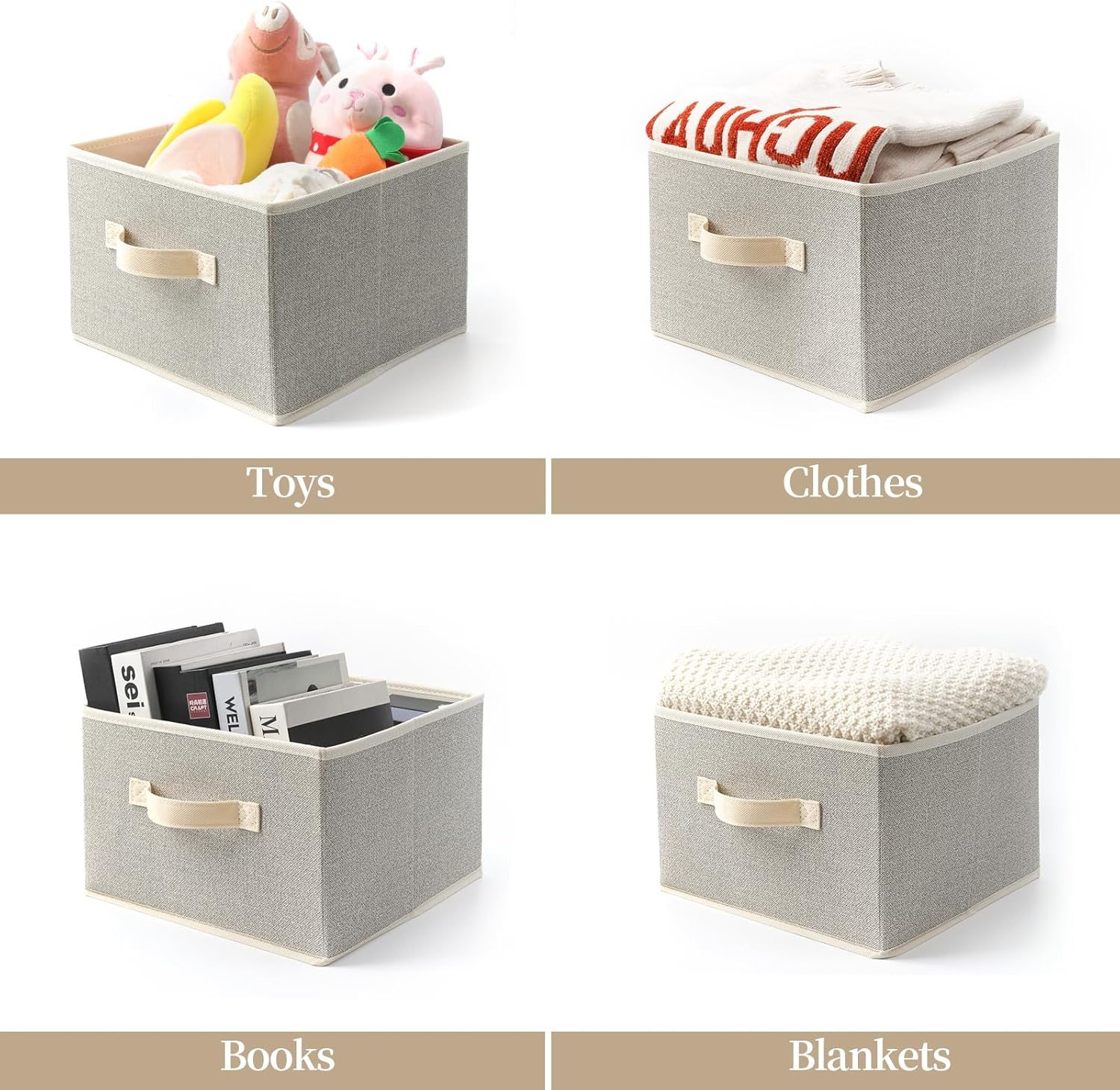 Storage Baskets, 11-Inch Woven Fabric Bins, Storage Cubes with Reinforced Handles, Organizer Bins for Closet Shelves, Foldable, for Toys, Clothes, Natural Beige (4PCS/Beige-11*11*7.8inch)