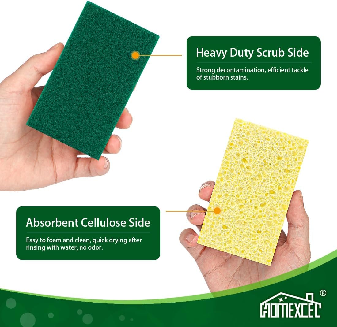 HOMEXCEL Sponges Kitchen 12pcs, Heavy Duty Sponges for Dishes, Scrub Cleaning Sponge for Non-Coated Cookware, Dishes, Pots, Pans, Dual Sided Dish Sponge for Kitchen, Household, Bathroom and More