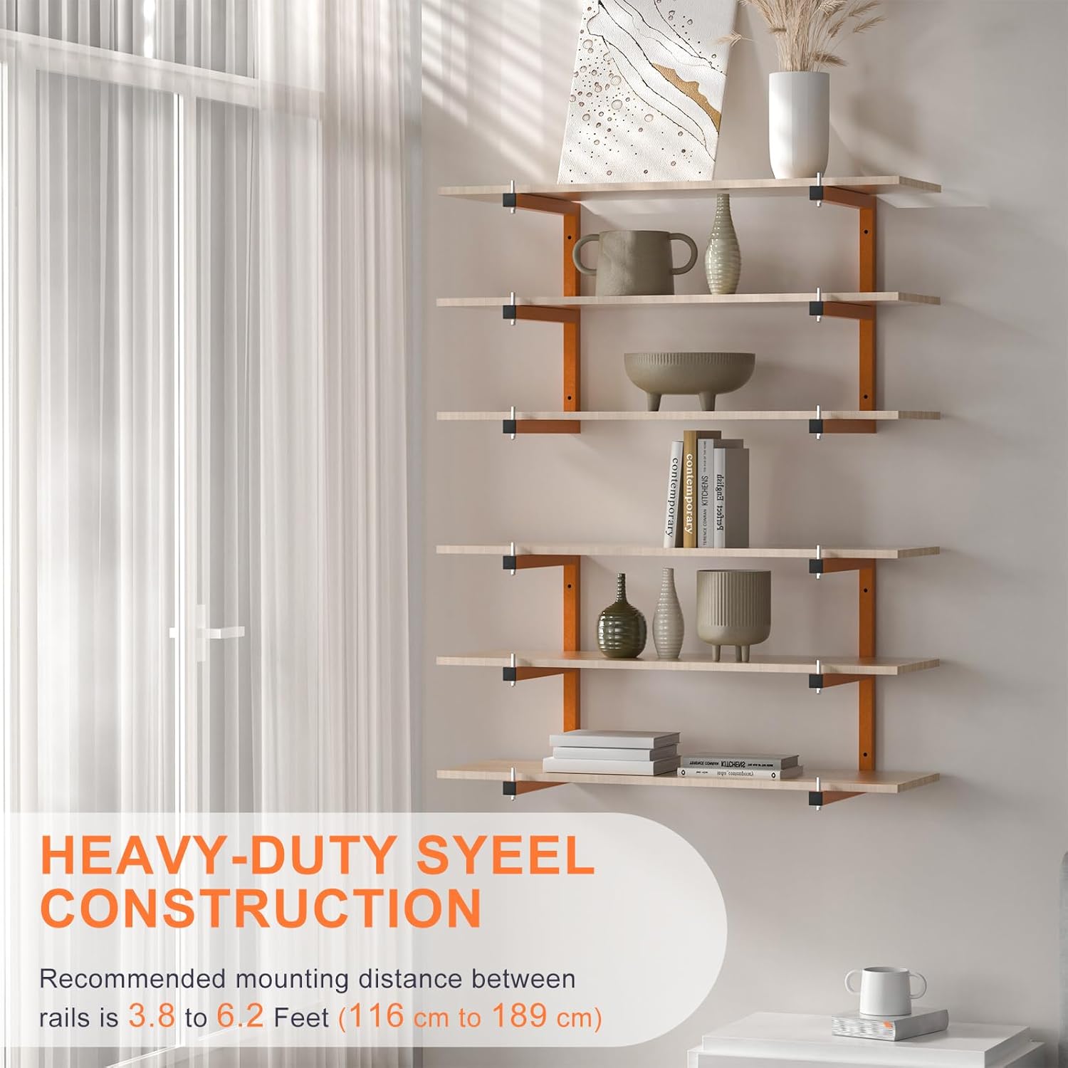 - 【 9-Level Wall-Mounted Wood Storage Rack 】 Lumber storage rack for organization garage are intricately welded industrially and come complete with drywall anchors and high-strength screw kits. Lumber storage rack orange arms are 13.11 inches long. Suitable for various walls, such as concrete walls, wooden walls, red brick walls, etc.