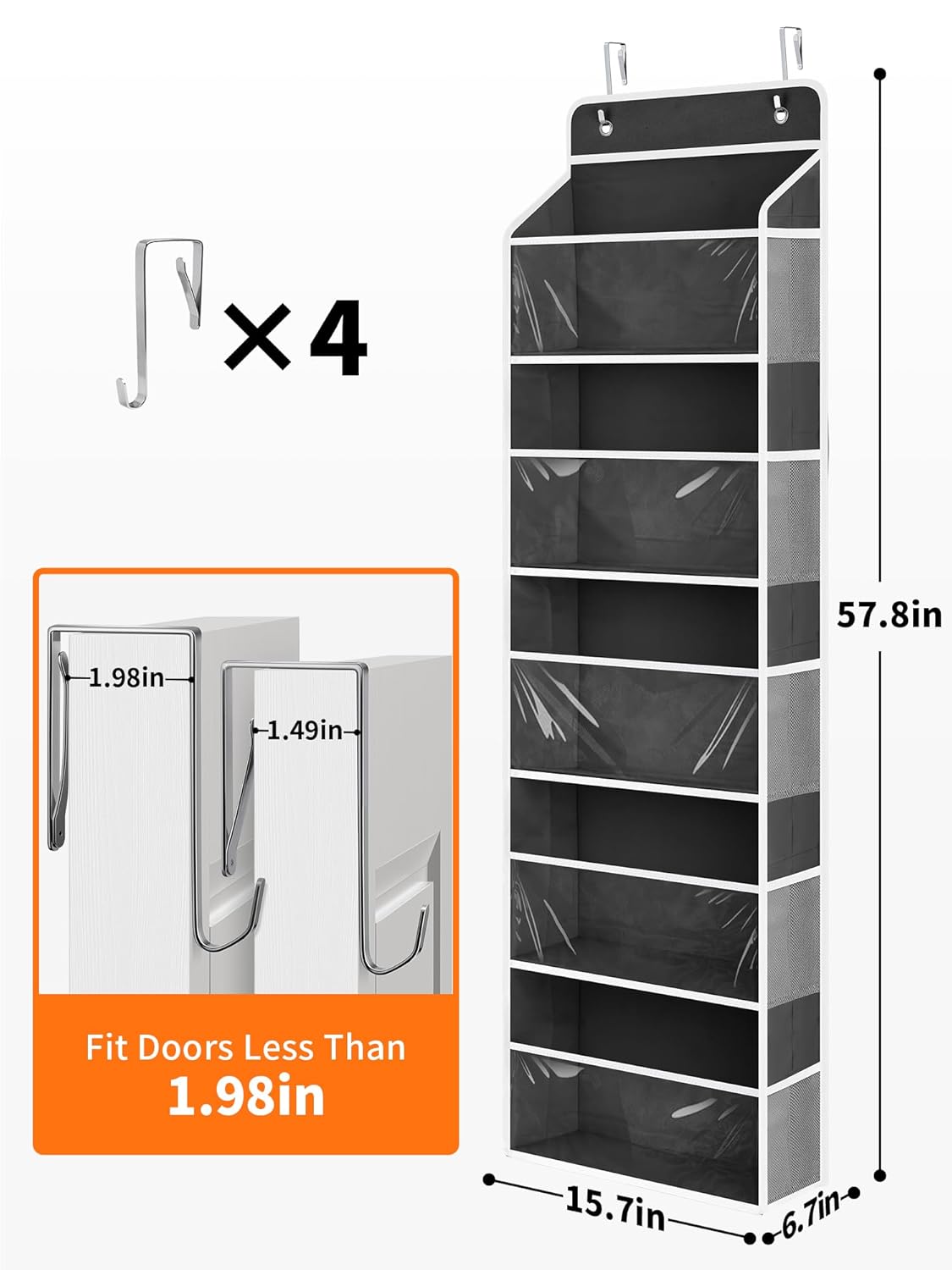 - Safe Fabrics & Easy to Access: Crafted from durable and breathable non-woven fabric, our toy storage is odorless, non-toxic, all for your safety. The design of clear PVC windows for the over-the-door organizer allows you to find the items you need at a glance, which is convenient and quick, making it easier for you to access and fully display your valuable collection, such as hats, toys, and dolls.