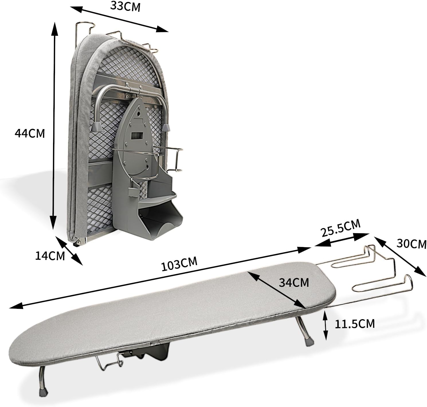 Folding Tabletop Ironing Board with Iron Holder Rest, Portable Space Saving Small Metal Ironing Board with Heat Resistant Cotton Cover