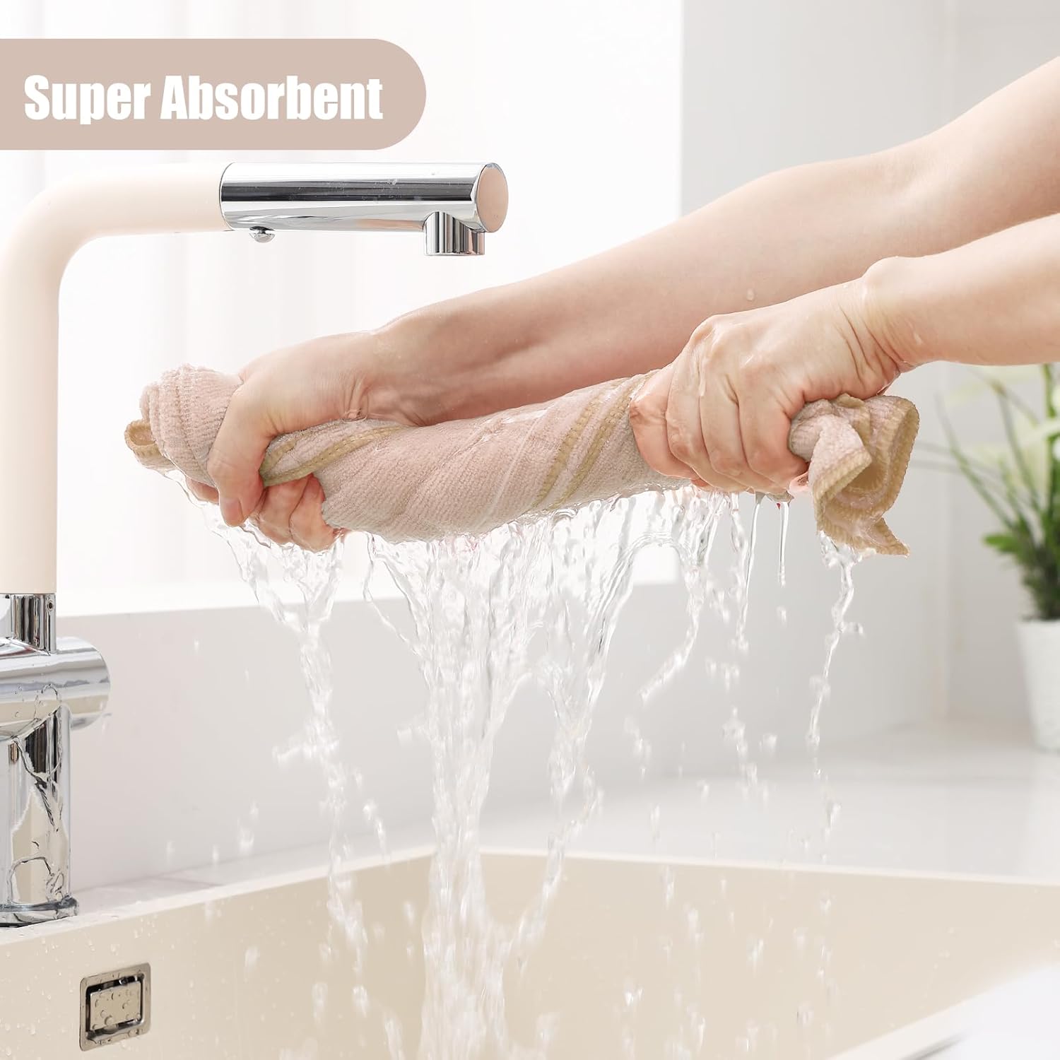 Homaxy Microfiber Kitchen Towels and Dishcloths Set, 16 Pack Soft and Absorbent Dish Hand Towels Bulk, 28 x 16 Inch & 12 x 12 Inch Quick Drying Rags for Washing Dishes, Beige