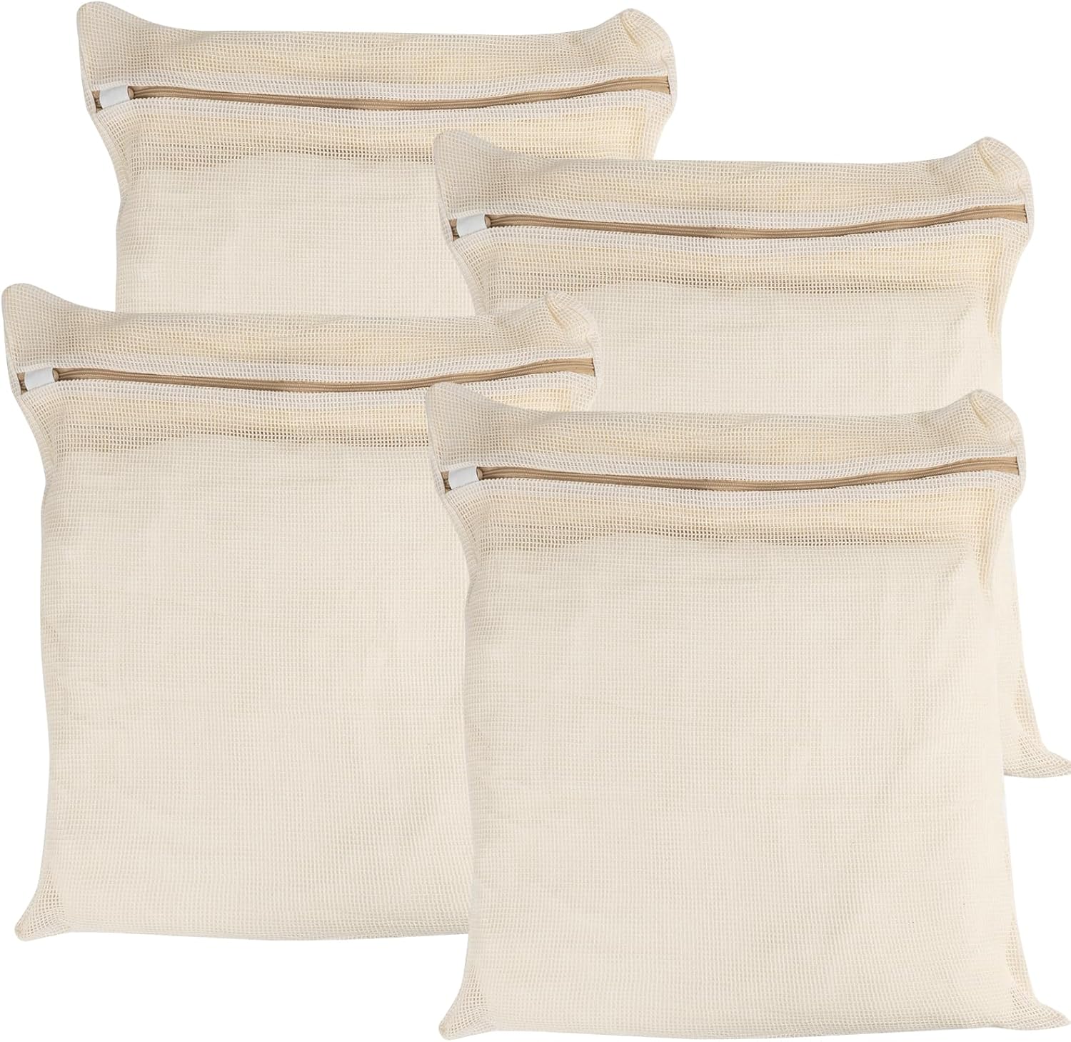 4-Piece Large Durable Organic Cotton Mesh Laundry Bags with Sturdy Zippers and Breathable Mesh are Delicate Laundry Bags for Underwear, Clothes, Pants and Socks