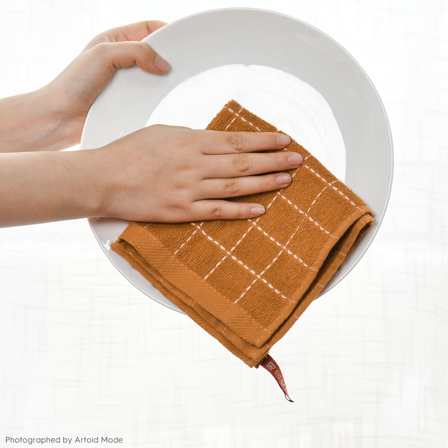 Artoid Mode Checkered Designed Cotton Beige Caramel Terry Kitchen Dish Cloths, 12x12 Inch Soft Absorbent Quick Drying Cleaning Kitchen Rags Set of 6