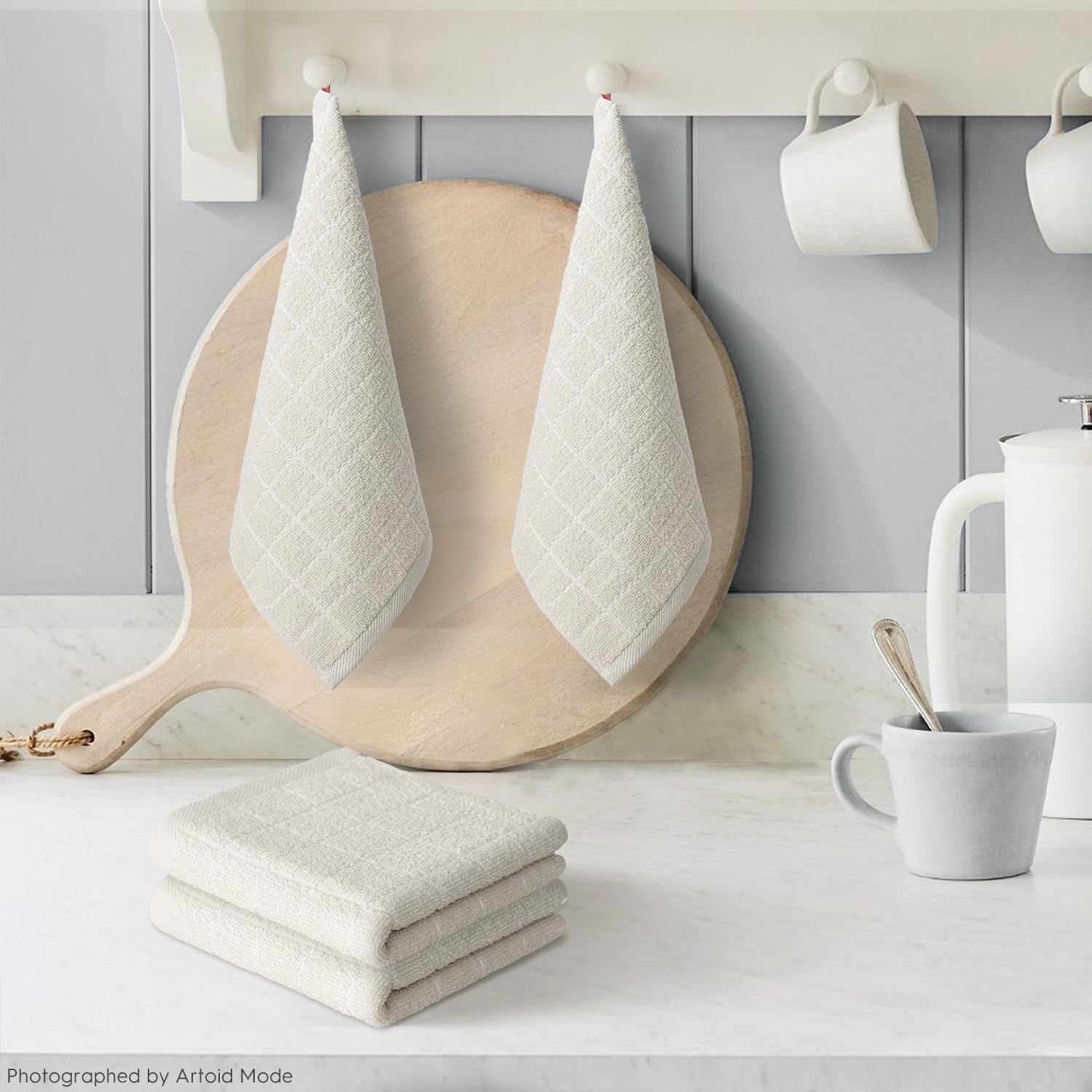 Artoid Mode Checkered Designed Cotton Beige Terry Kitchen Dish Cloths, 12x12 Inch Soft Absorbent Quick Drying Cleaning Kitchen Rags Set of 6