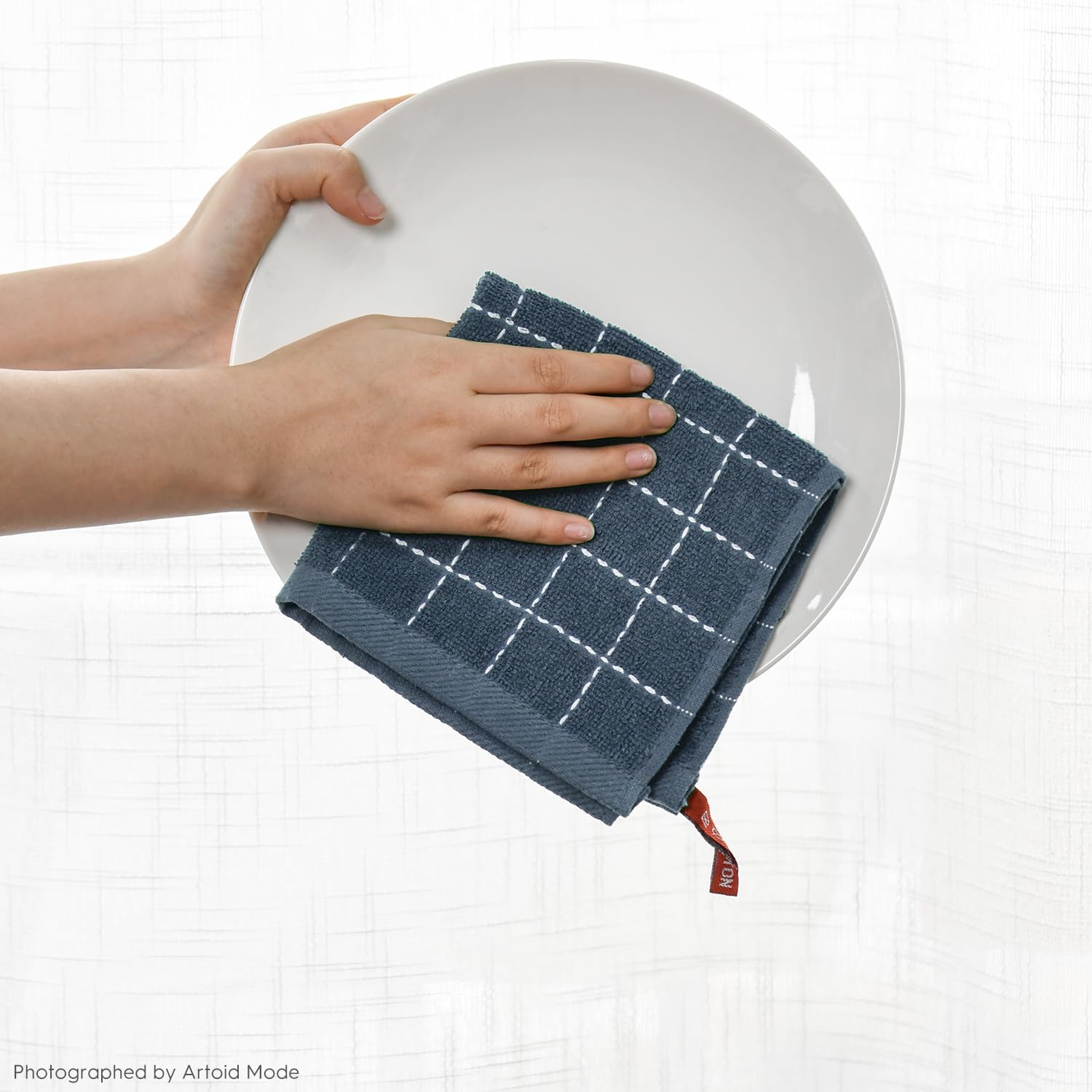 Artoid Mode Checkered Designed Cotton Grey Terry Kitchen Dish Cloths, 12x12 Inch Soft Absorbent Quick Drying Cleaning Kitchen Rags Set of 6