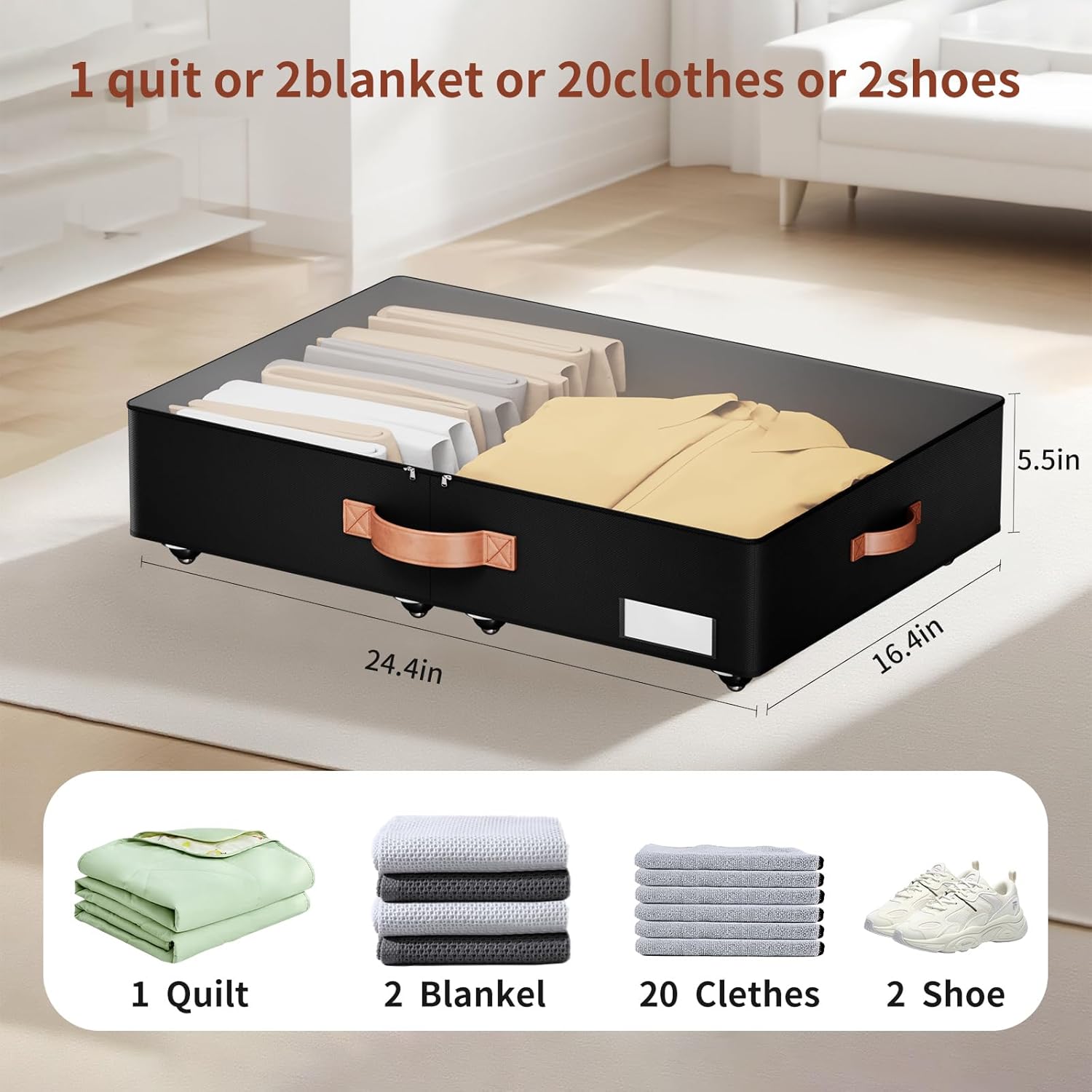 - [Multifunctional Storage Solution]: Our underbed storage box offers versatility for various storage needs. Secured with Velcro, the bottom frame and storage box can be utilized in different places, including closets, cloakrooms, bedrooms, baby rooms, under cribs, and dorms. It's perfect for storing seasonal clothes and everyday items. When not in use, simply fold them up to save space.