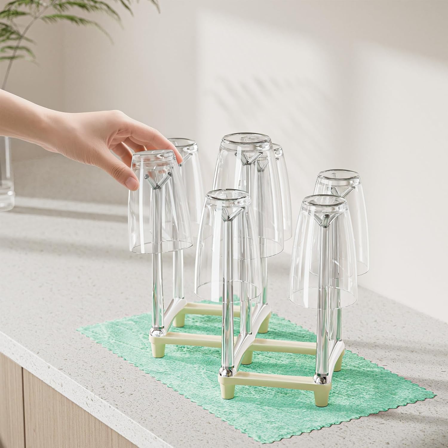 - PREMIUM MATERIAL - Foldable cups drying rack made of high quality PP material, durable. Comes with an absorbent cloth. Protect your cutlery from scratches.