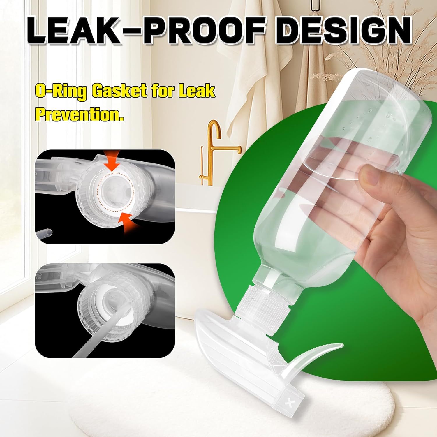 - Leak-Proof Design: Built with leak-proof gaskets and precision threading, our trigger sprayer heads create a tight, secure seal that helps prevent drips, leaks, and unnecessary waste during use. When not in use, twist the nozzle to the off mode to avoid accidental spraying and ensure clean, dry storage