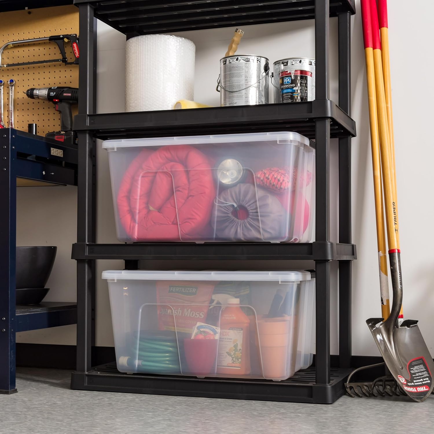 IRIS USA 94 Qt Stackable Plastic Storage Bins with Lids, 4 Pack - BPA-Free, Made in USA - See-Through Organizing Solution, Latches, Durable Nestable Containers, Secure Pull Handle - Clear