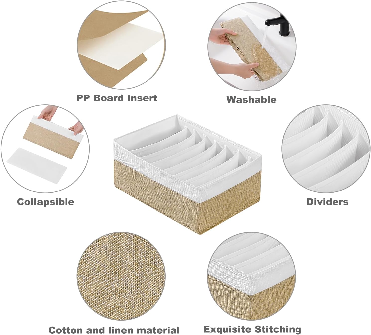 4 Packs T-shirt Drawer Organizers for Clothing,8 Grids Compartment Wardrobe Storage Box, Washable Clothes Organizer for Folded Clothes, Legging, Silk Scarve-12.59''x9.05''x5.9-BeigeWhite