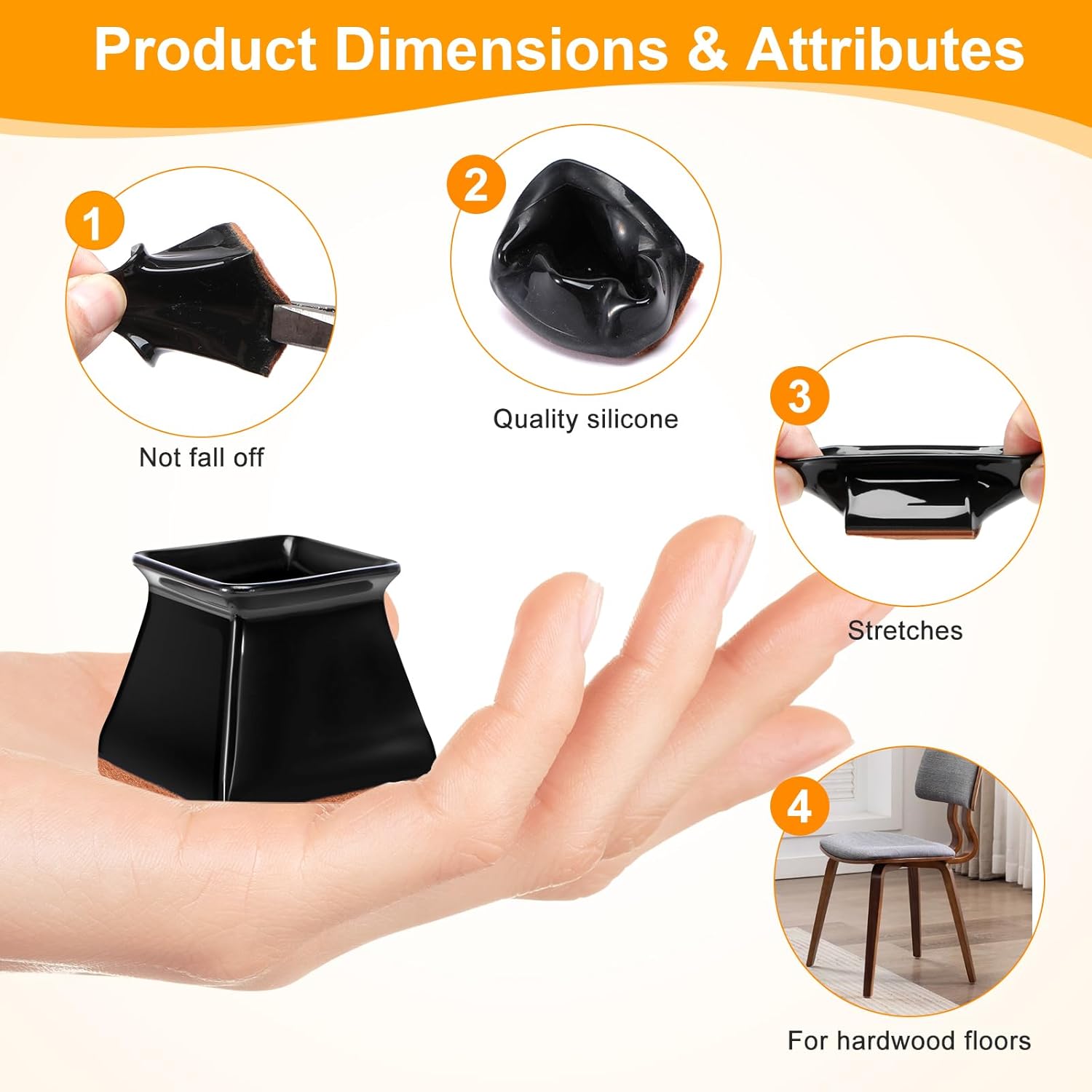 - Quick & Tool-Free Installation – Stretch and slip over chair legs, no tools or adhesives needed, no mess left behind.