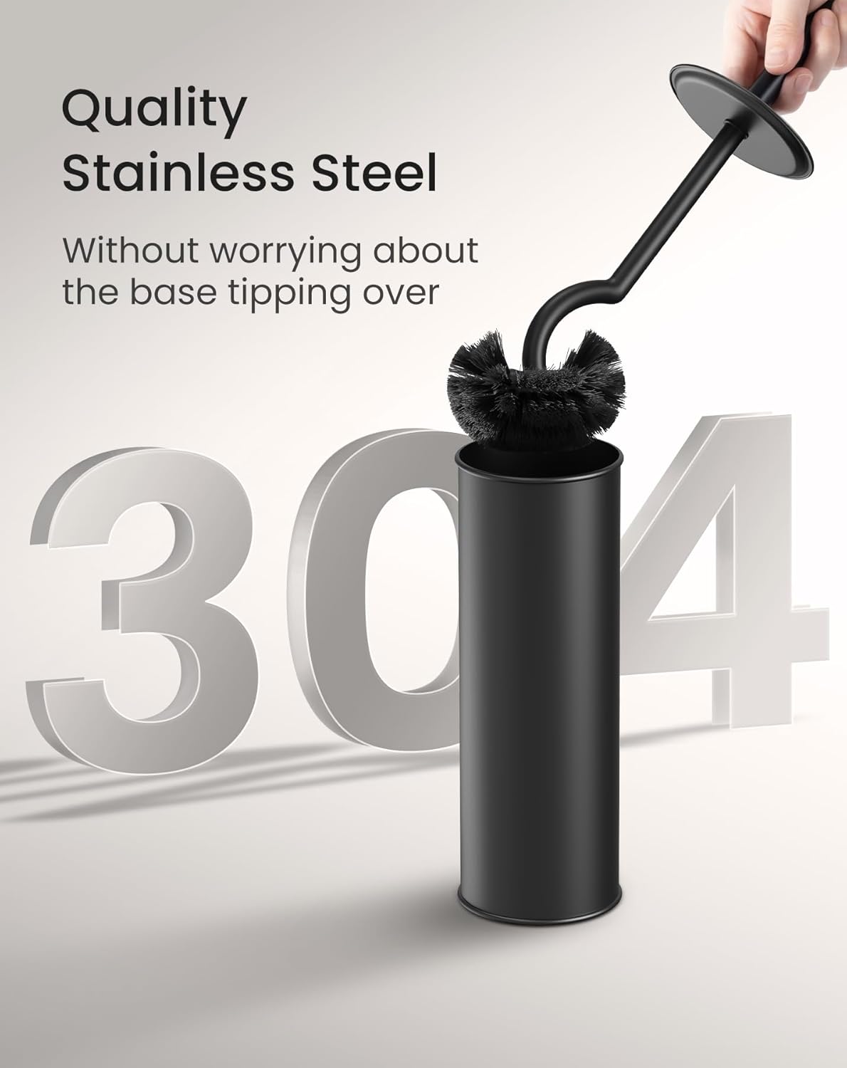 - 304 Stainless Steel Construction: Crafted from quality 304 stainless steel, this toilet brush holder set is rust-resistant and built to last. The robust construction ensures durability, while the matte surface is easy to clean, preventing stains. This toilet brush’s matte finish is designed to maintain its pristine look for years, making it a reliable choice for maintaining bathroom hygiene