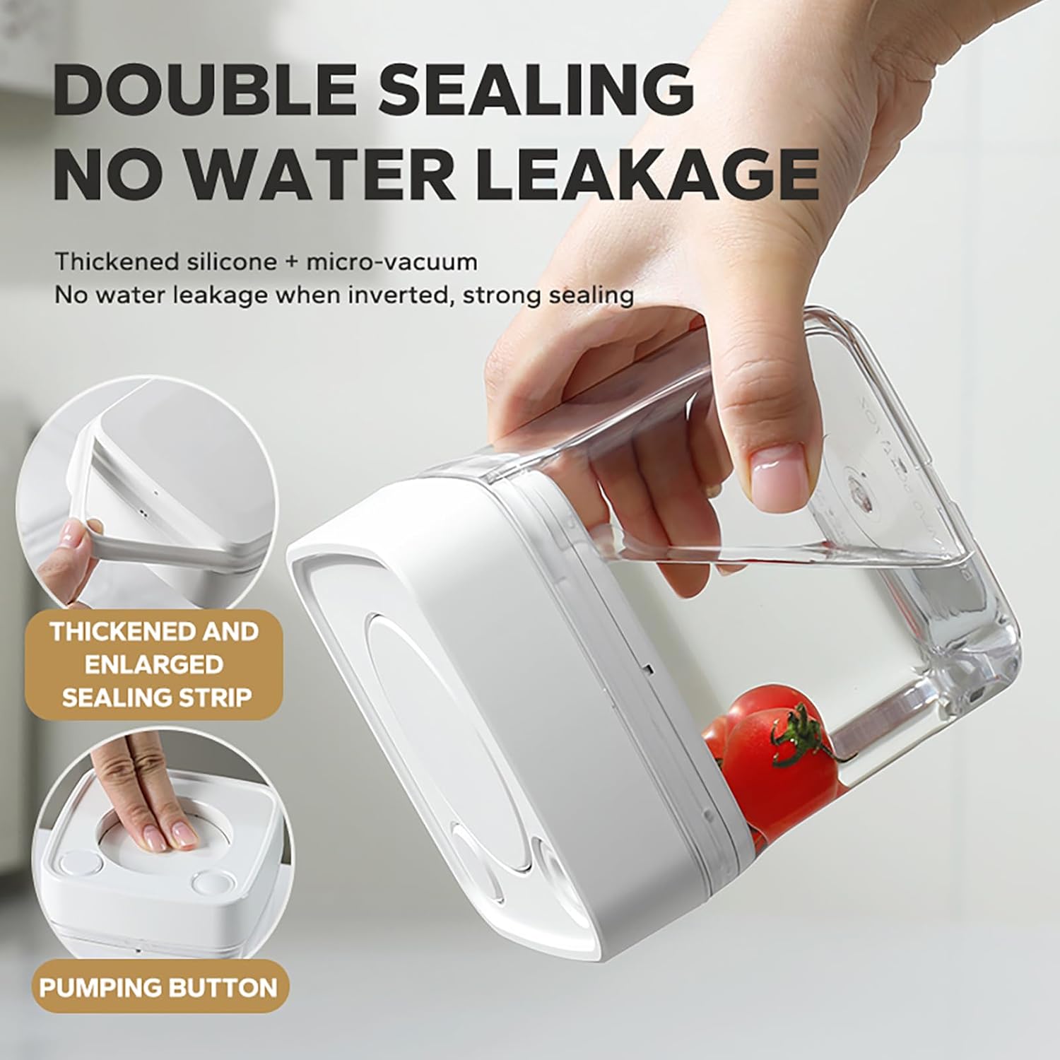 - 【Innovative Manual Vacuum Pump】Just press the button to easily remove the air and create a vacuum seal, which makes the food stay fresh ten times longer than in ordinary non-vacuum sealed containers.A second small button releases air to deactivate the vacuum.