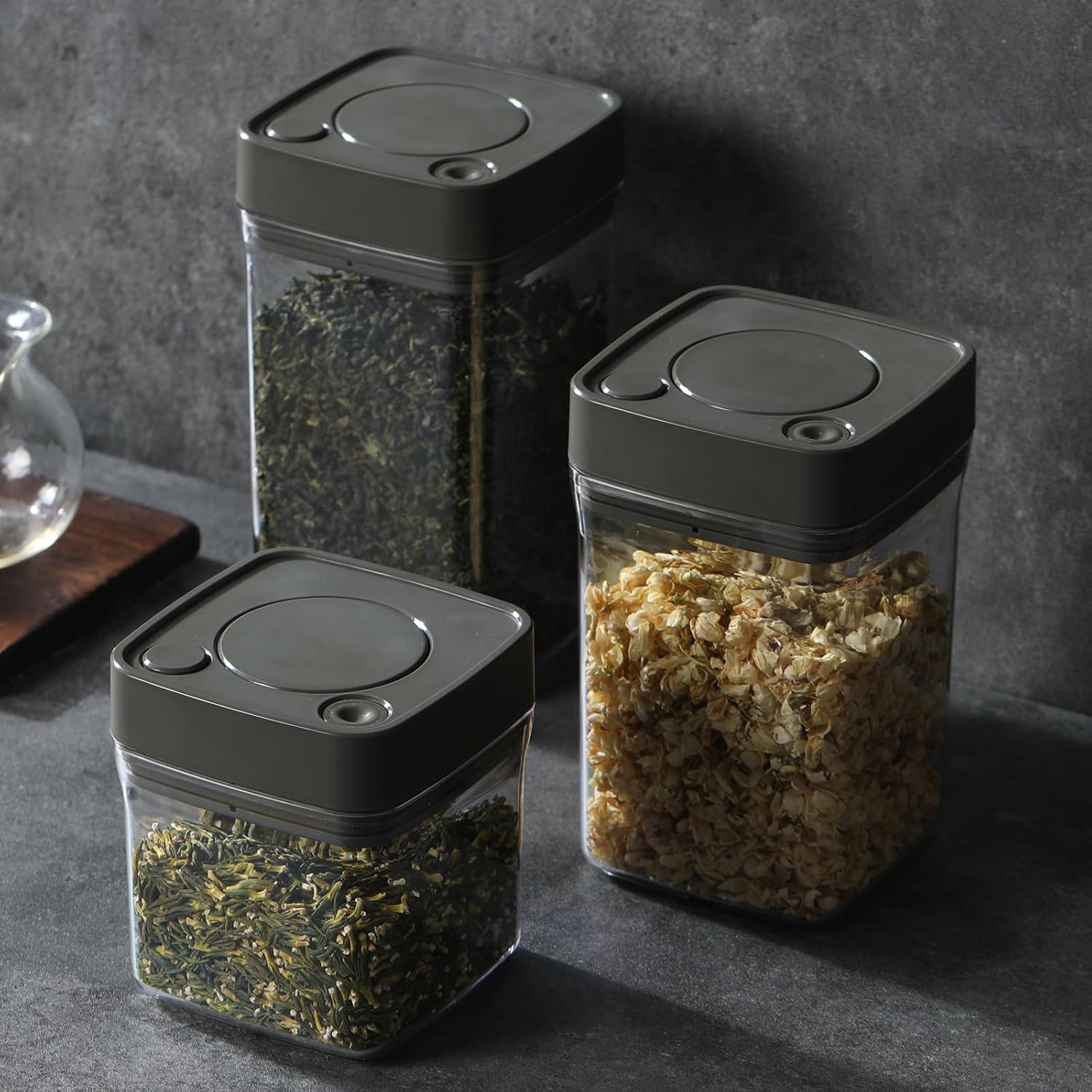 Manual Vacuum Jar With One-Button Vacuum Pump, Airtight Food Cereal Containers Storage With Lids (grey-4pc)
