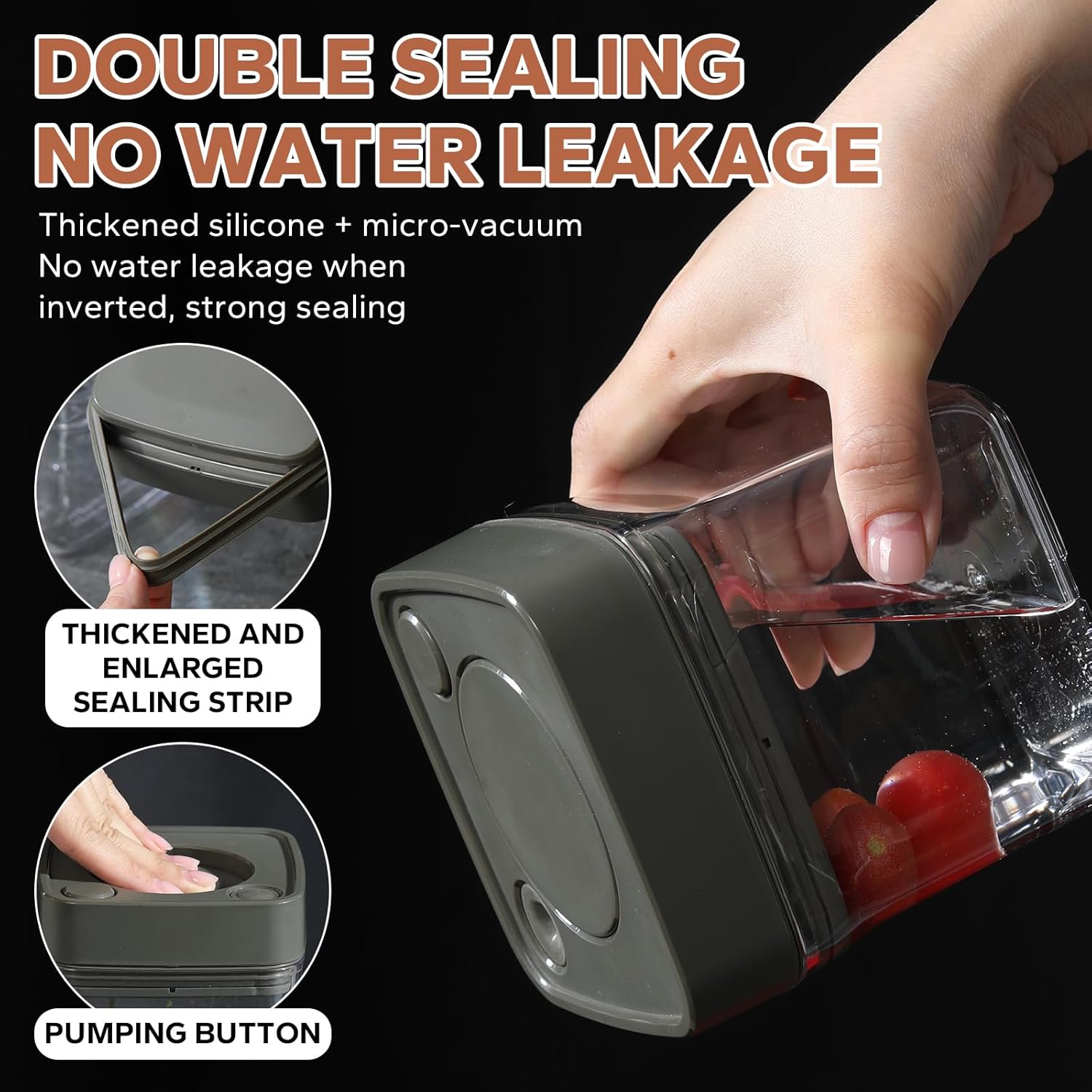 - 【Innovative Manual Vacuum Pump】Just press the button to easily remove the air and create a vacuum seal, which makes the food stay fresh ten times longer than in ordinary non-vacuum sealed containers.A second small button releases air to deactivate the vacuum.