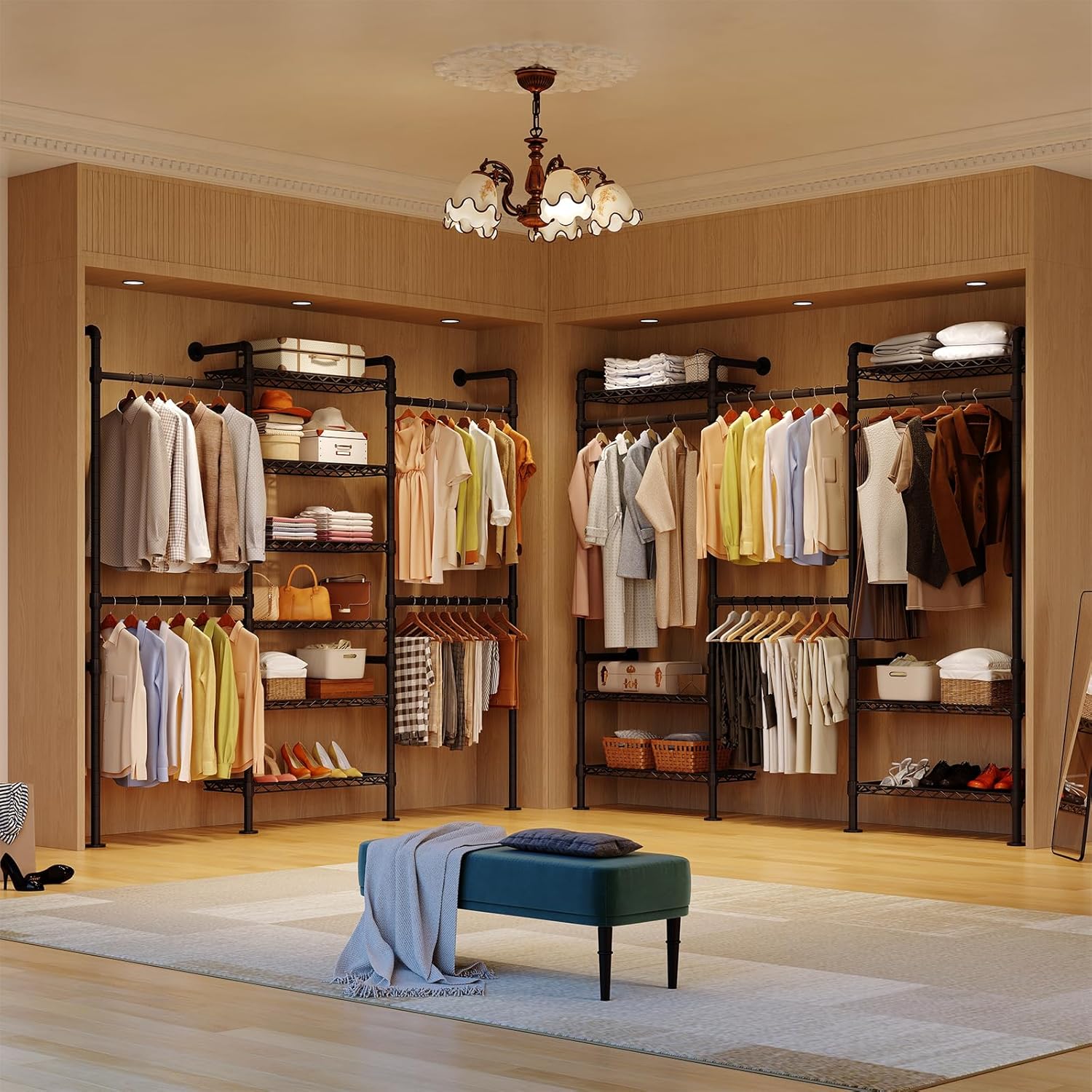 - Maximize Your Storage Space: The closet system in L- or 45° shapes is perfect for corners and tight spaces such as apartments and bedrooms, while straight lines are ideal for walk-in closets and clothing stores, helping you efficiently utilize every inch of your room.