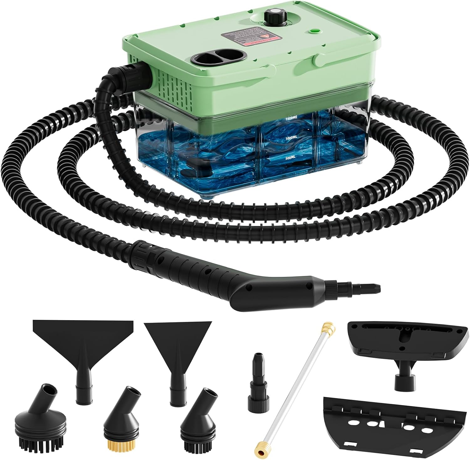 - Pro Practical Accessories Set: Conquer any mess with 9 specialized tools! The Portable Steam Cleaner can be used with different accessories to meet your cleaning requirements for every scene.It excels as a grout steam cleaner for tile floors,a steam cleaner for bathroom,or even a car steam cleaner,ideal for cleaning a variety of surfaces.