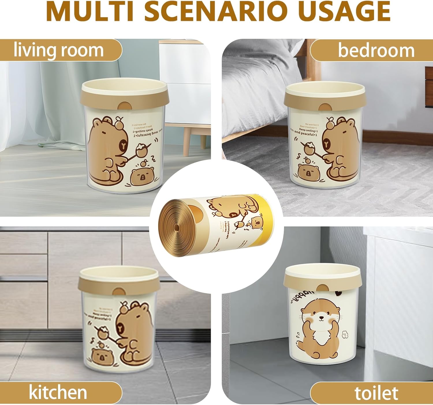 - 🦥【Adorable Capybara Print for Daily Joy】Turn your trash can into a cheerful accent! These 8 gallon trash bags feature charming capybara patterns —perfect for kitchens, offices, or playrooms. Unlike dull medium garbage bags , our design adds a smile to your routine.