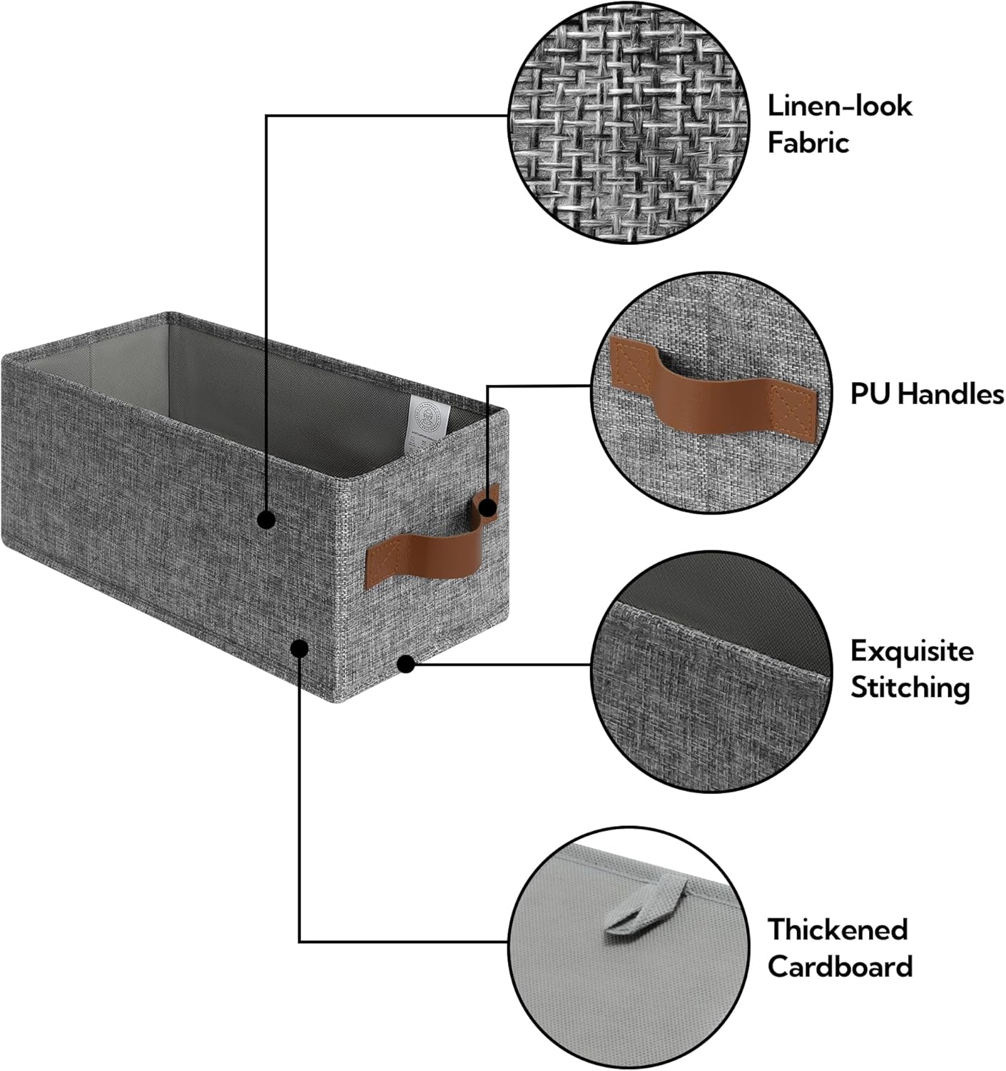 GRANNY SAYS Small Fabric Storage Bins with PU Handles, Storage Baskets for Shelves, Perfume Storage, Narrow Baskets for Organizing DVD, Photos, Aromatherapy, Scarf, Diaper, Cd, 3-Pack, Gray