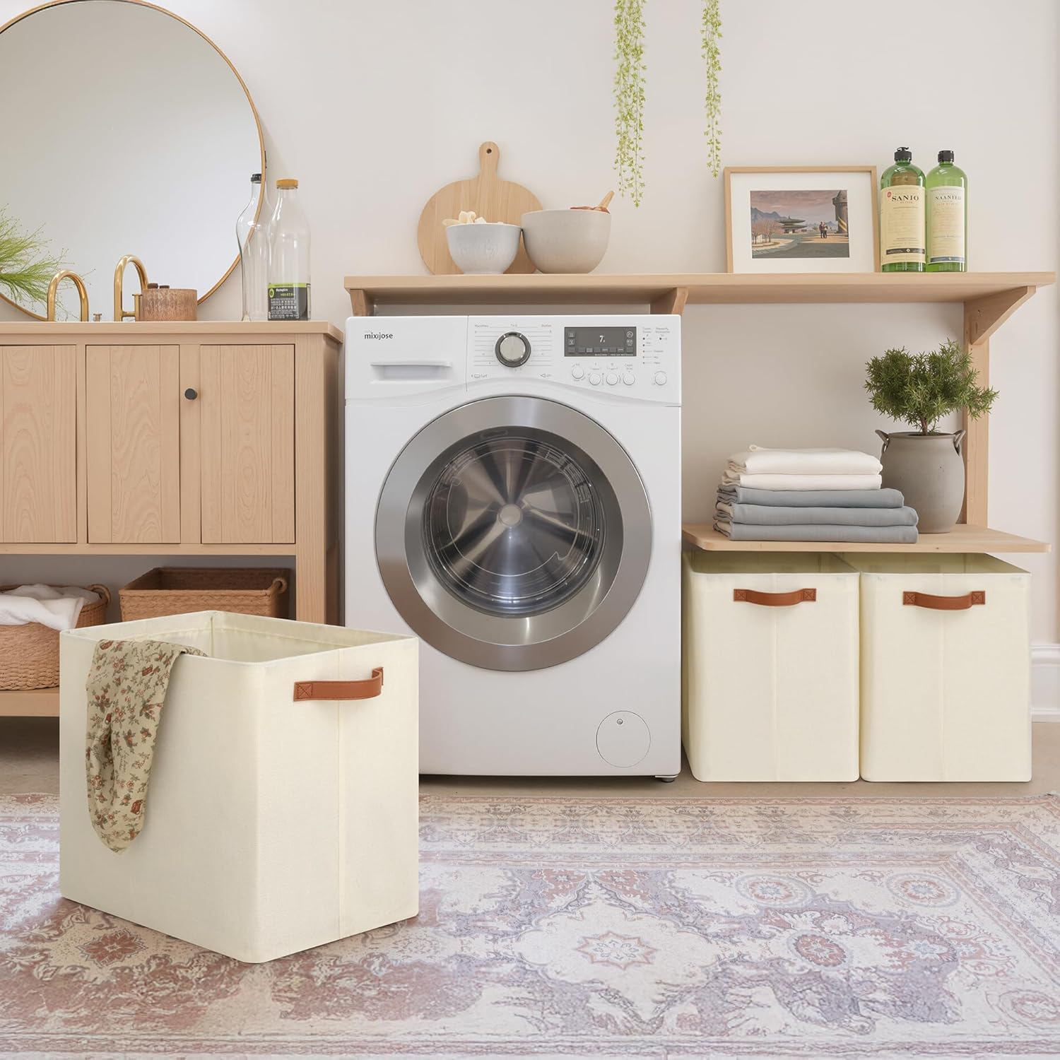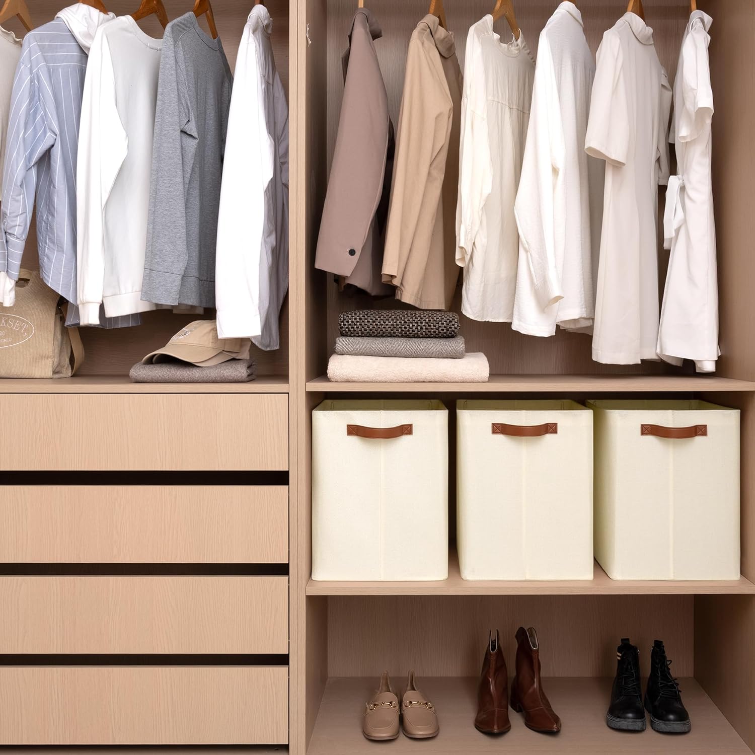 - PU Leather Handles: Designed with 2 durable sewn-in PU leather handles, this bin allows for easy lifting or pulling from shelves, closets, or cabinets—making everyday access effortless and stylish.