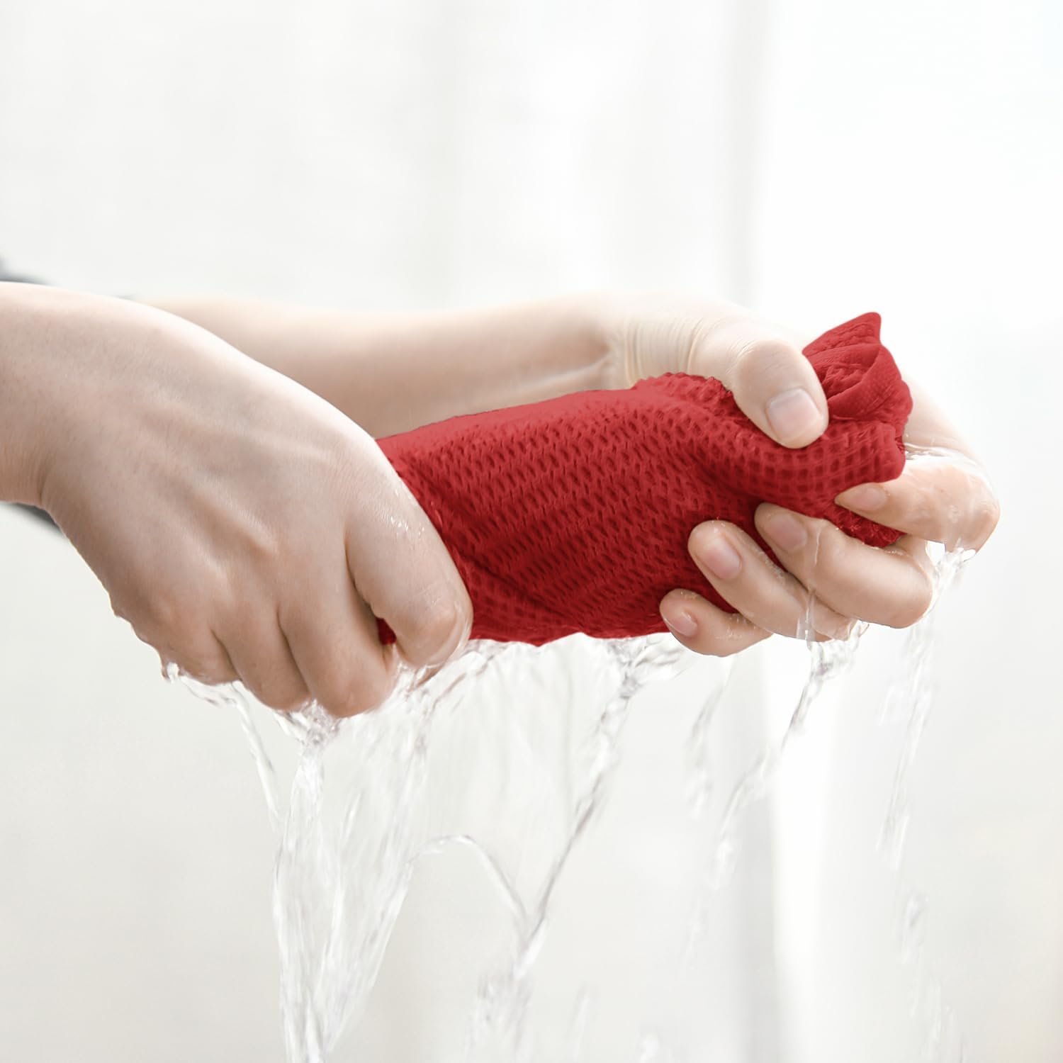 Artoid Mode 100% Cotton Dark Red Waffle Weave Kitchen Dish Cloths, 12x12 Inch Ultra Soft Absorbent Quick Drying Kitchen Dish Towels Set of 6