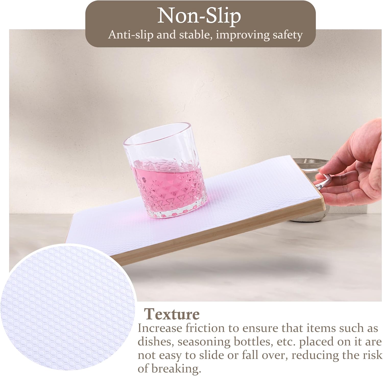 - High Quality Food Grade Material- Cabinet shelf drawer liner is made of a high quality material, which is BPA Free making it safe to use in the kitchen. The white color of the liners is clean and neutral, fitting well with various home decor styles. The crisp white color of the liners adds a clean and fresh look to your cabinets, shelves, or drawers, enhancing the overall aesthetic of your storage spaces.