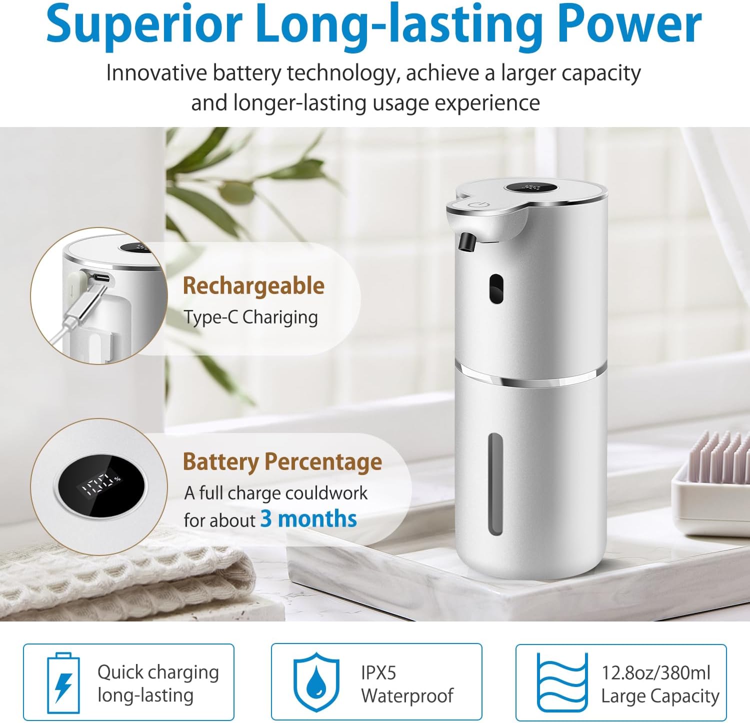 - 【Touchless Automatic Soap Dispenser】Discover effortless handwashing with our automatic soap dispenser. Using advanced infrared technology, it detects your hand and dispenses the ideal amount of soap instantly. With its highly sensitive induction, foam is dispensed in just 0.25 seconds, it delivers soap without any physical contact. making handwashing easier and more hygienic than ever before