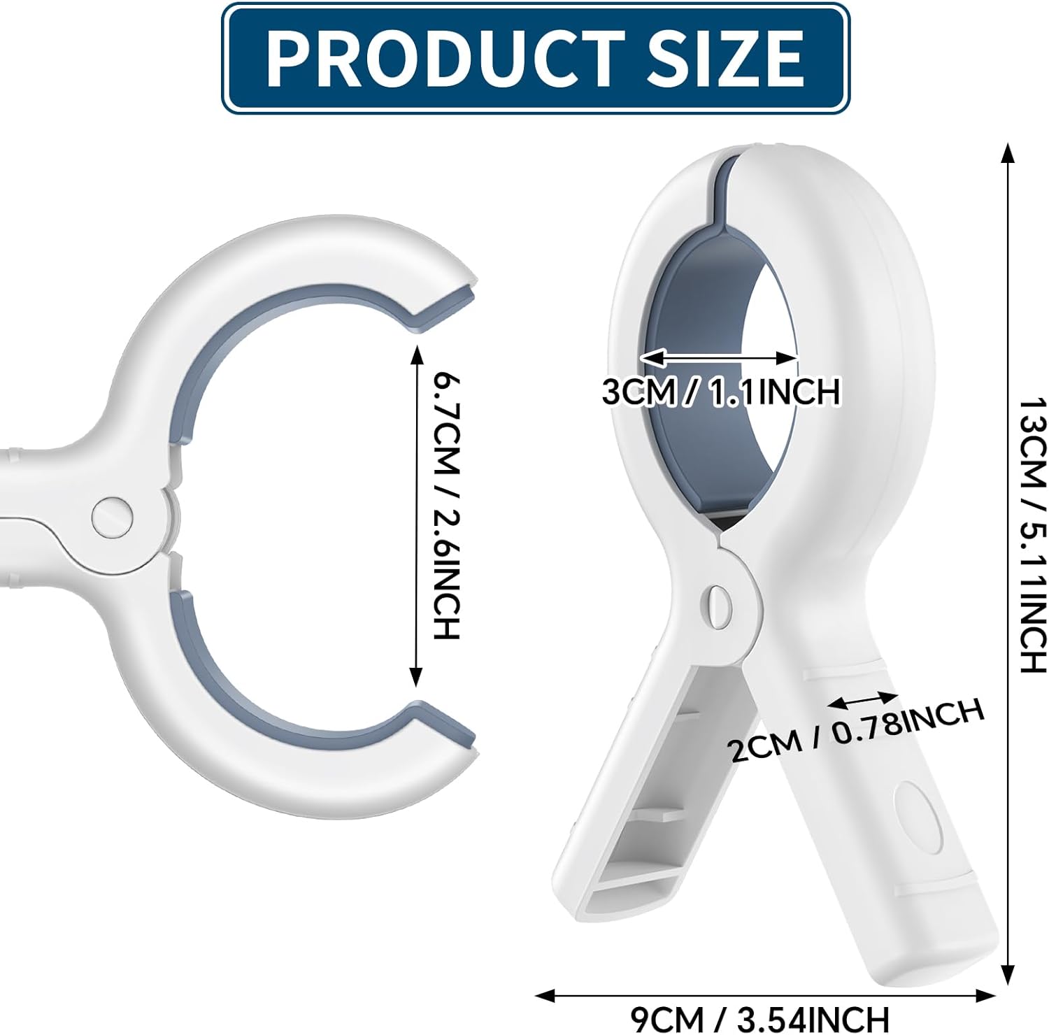 - 【Perfect Size】:6 pack extra large beach towel clips included,three towel clips are khaki, and three are blue,each measuring 5 inches in length and 1.3 inches in width.The towel clips with a maximum opening of 2.6 inch width gap that can use it to clamp the large items like quilts, throw blanket, sheet and other clothes to dry it on windy days and prevent the clothes slipping off from the clothesline, allowing you to fully relax and enjoy your time at the beach without worrying about towels falling off.