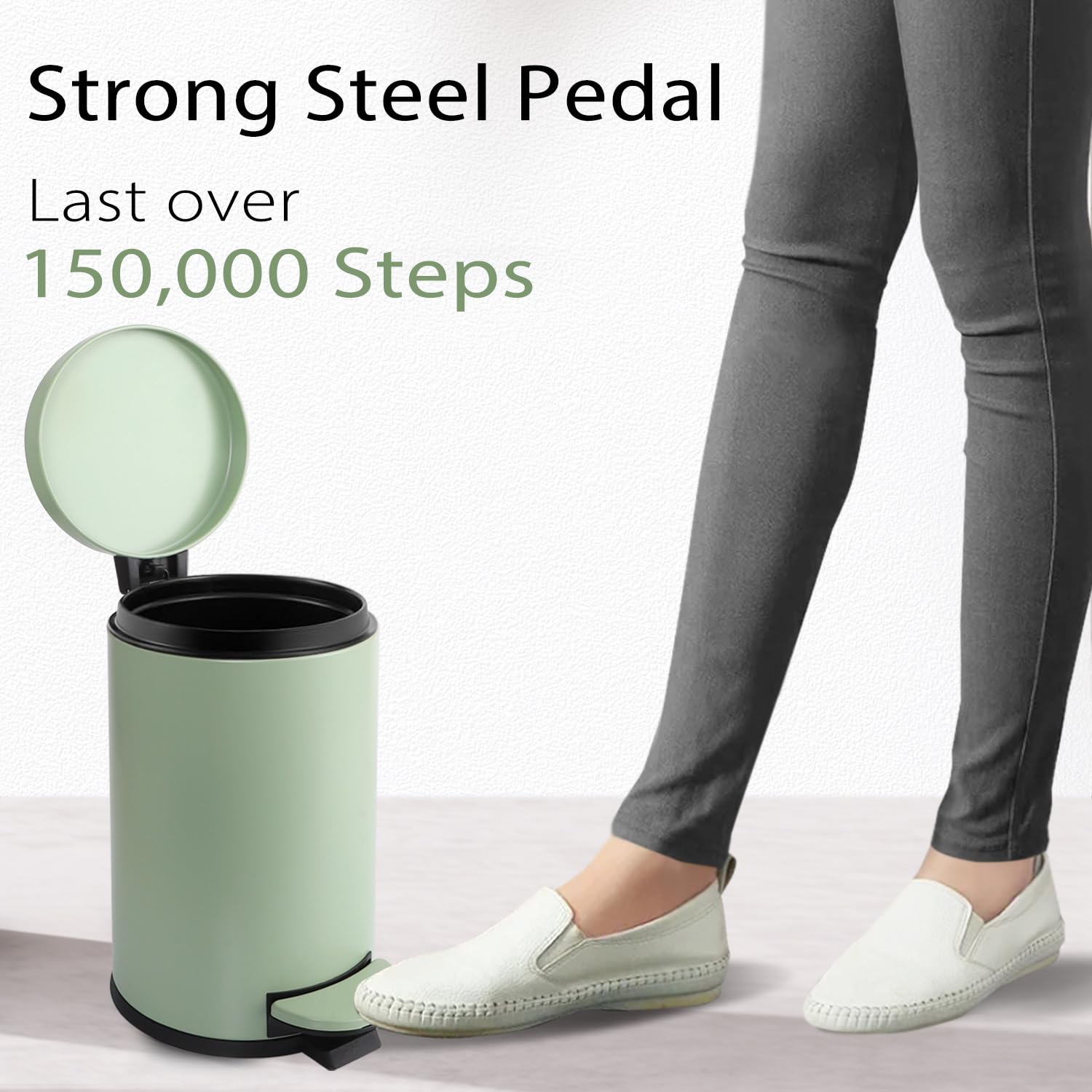 - Strong Steel Pedal: The pedal of the trash can is engineered to last over 150,000 steps — that's more than 20 steps a day for 20 year