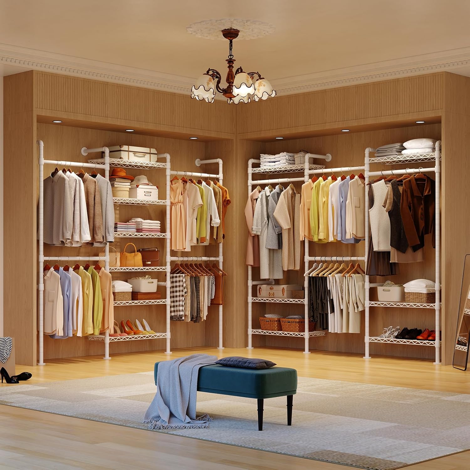 - Maximize Your Storage Space: The closet system in L- or 45° shapes is perfect for corners and tight spaces such as apartments and bedrooms, while straight lines are ideal for walk-in closets and clothing stores, helping you efficiently utilize every inch of your room.