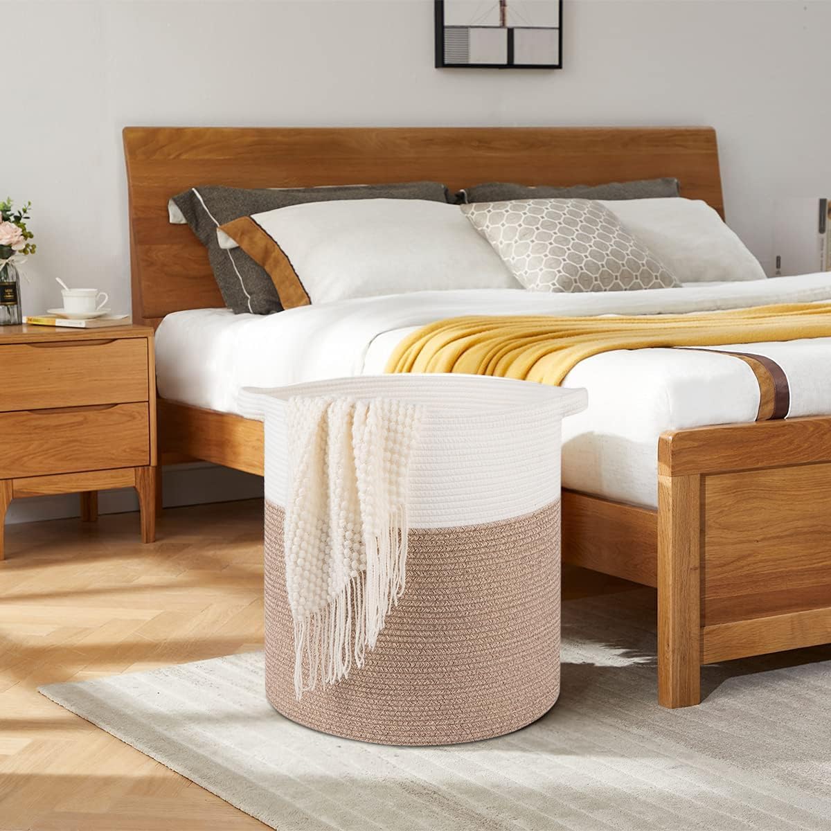 - Washable Large Basket: This large basket can be washed by hand or machine with gentle detergent. If machine washed, please put them into a laundry bag. NOTE: These cotton rope baskets are folded when shipping, but it will turn back to its elegant shape quickly if you fill it with some towels or clothing, and iron is great idea to remove the creases