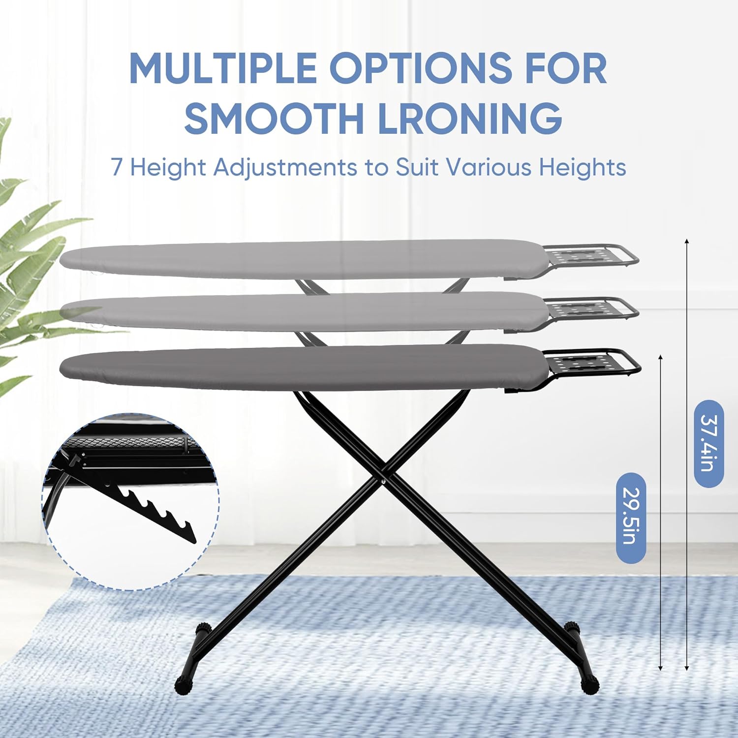 - SAFETY FEATURES: Built-in iron rest with protective holes for steam ventilation keeps hot iron secure while not in use