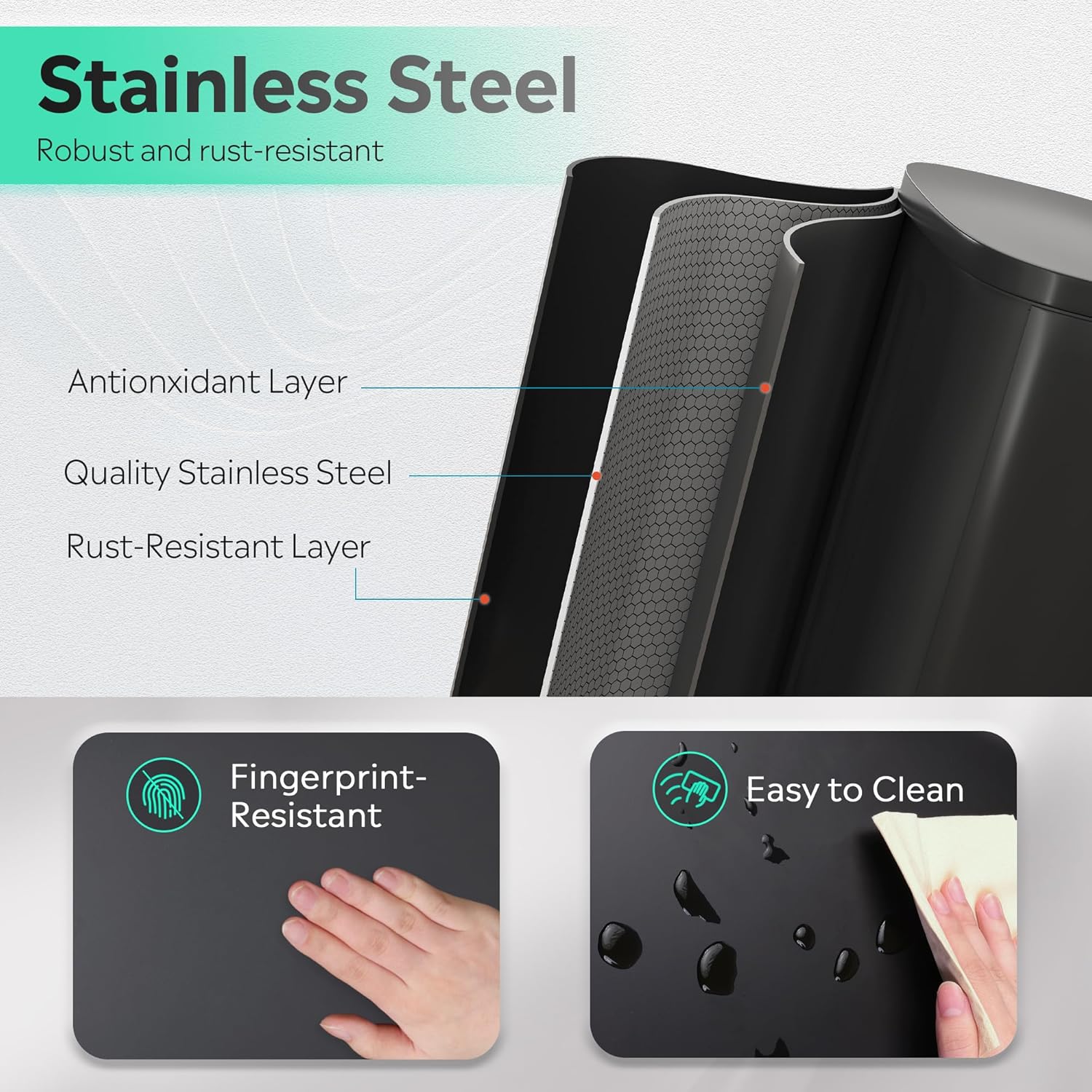 - High-quality Materials: The garbage can is constructed from durable stainless steel, featuring a long-lasting surface that resists fingerprints, stains, and is easy to clean—simply wipe away dirt with a damp cloth to keep it looking fresh.