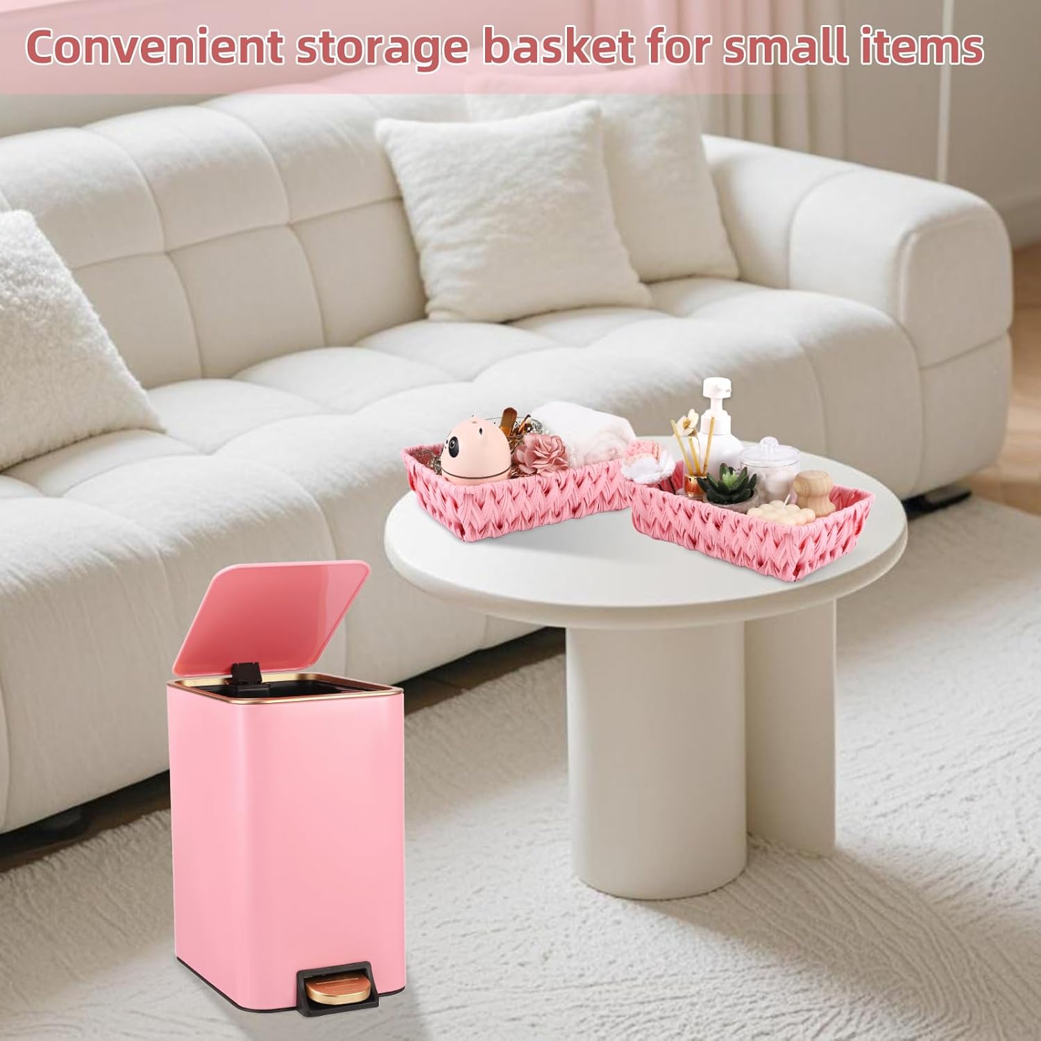 - [Save-Space Small Trash Can]: XLHOMO slim bathroom trash can with a lid making it a fit for the bathroom, bedroom, office, or any narrow space. Are you still annoyed by the narrow space in the room being wasted? Use it to improve your space utilization