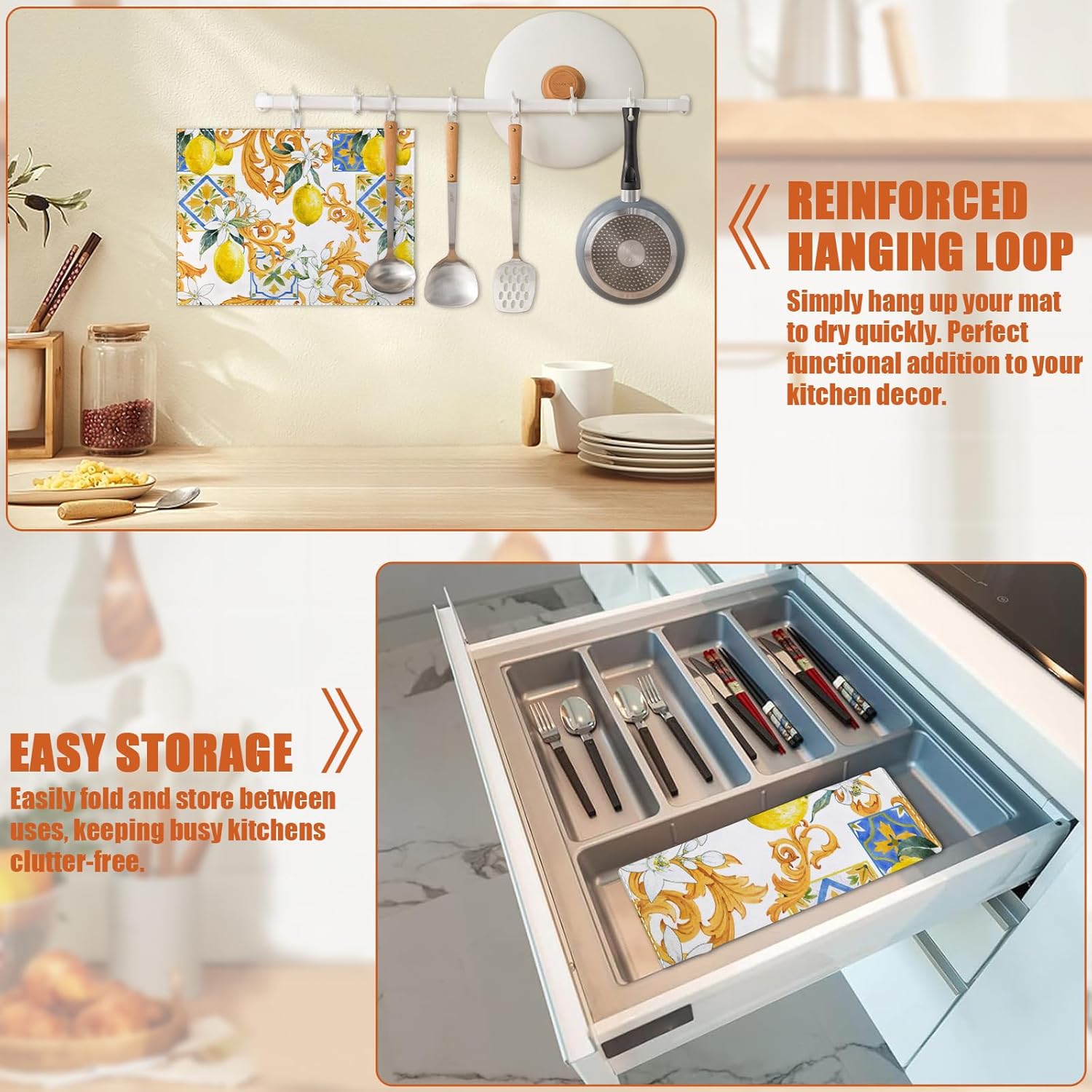 Watercolor Lemon Dish Drying Mat for Kitchen Counter Microfiber Absorbent Dish Kitchen Drying Mat Draining Reusable Washable for Dishes/Utensils/Counterto