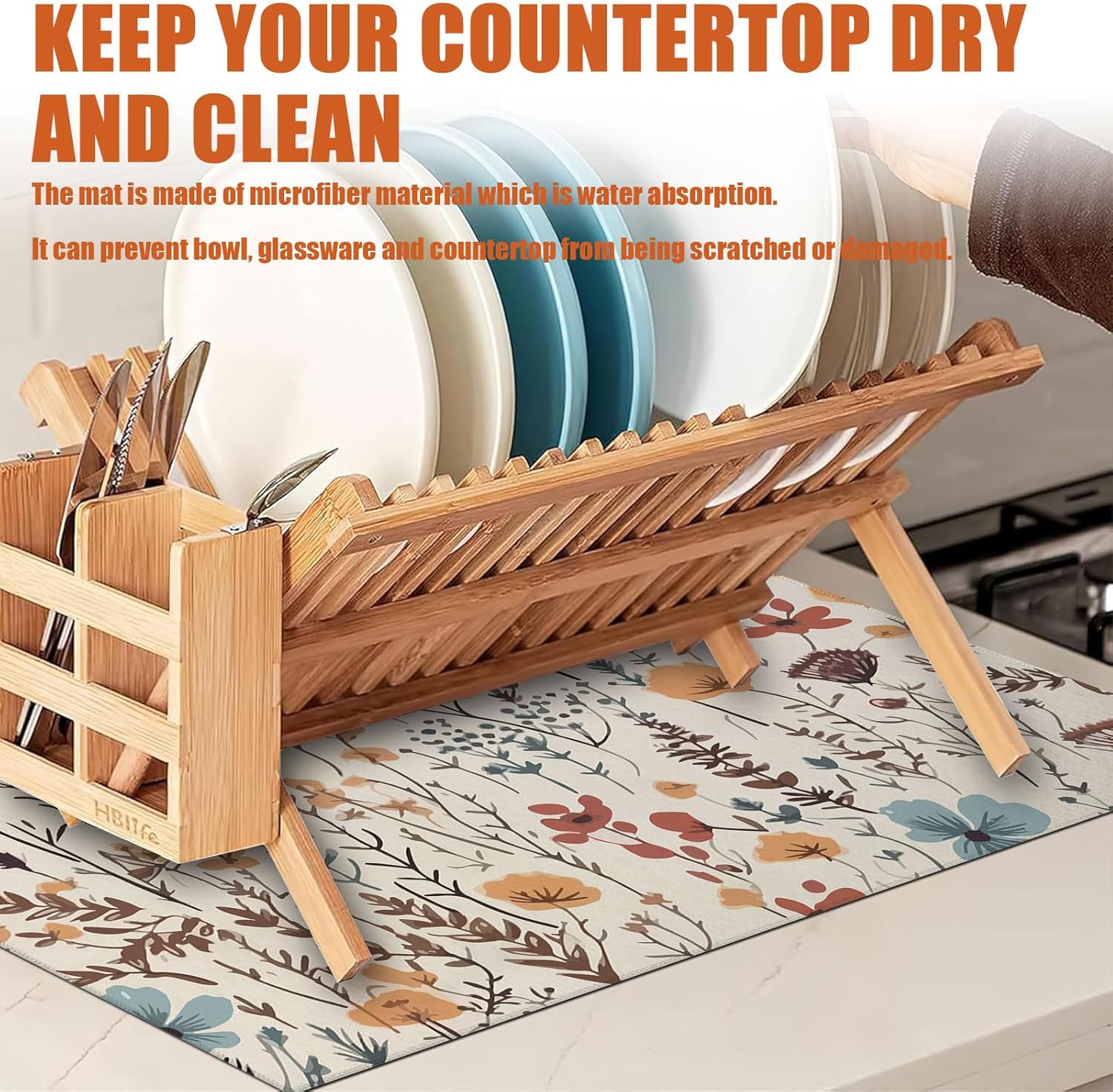 - 【Easy to Clean】The utensil drying mat can be cleaned by hand or machine to remove stains, the kitchen utensil drying mat to dry quickly without a machine. HD printed suede has excellent color lock, does not fade and can be reused many times.