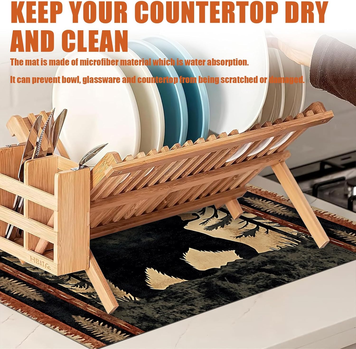 Forest Bear Dish Drying Mat for Kitchen Counter Microfiber Absorbent Dish Kitchen Drying Mat Draining Reusable Washable for Dishes/Utensils/Counterto