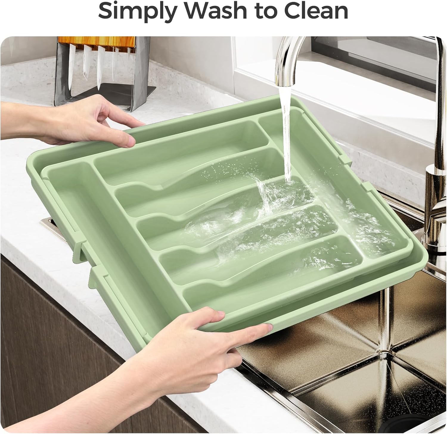 Extra Large Expandable Silverware Organizer, BPA-Free Food-Safe Cutlery Flatware Organizer, Kitchen Utensil Drawer Organizer, Adjustable Silverware Holder for Spoons Forks Knives, Green