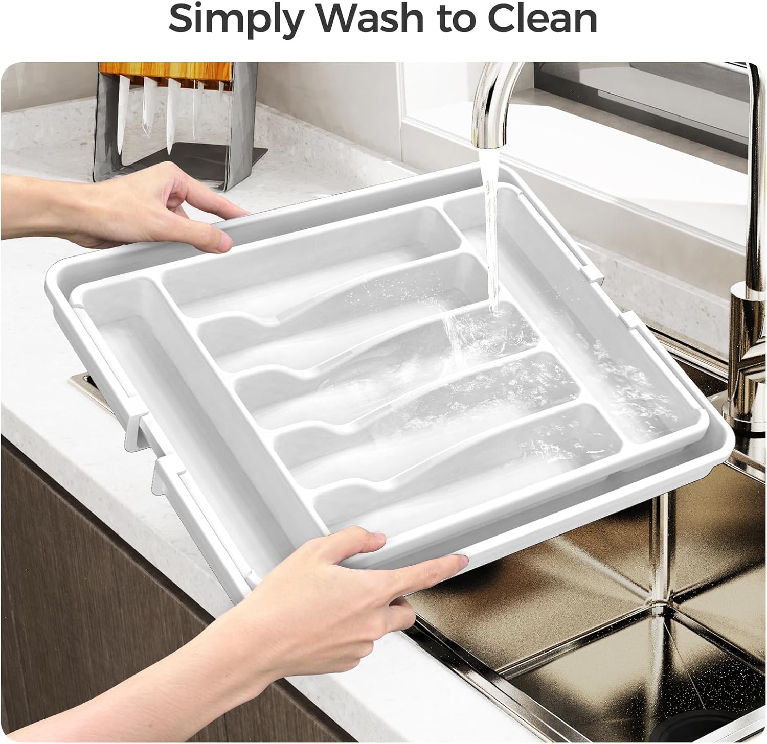 Extra Large Expandable Silverware Organizer, BPA-Free Food-Safe Cutlery Flatware Organizer, Kitchen Utensil Drawer Organizer, Adjustable Silverware Holder for Spoons Forks Knives, White