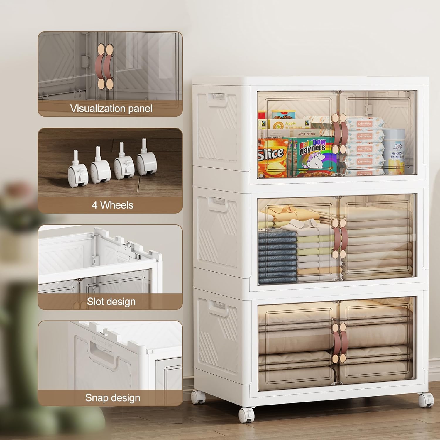 - 【Smooth Rolling Convenience】:Utilise our four wheels (2 regular + 2 wheels with brake pads) - glide your storage bin easily over any floor surface. Ultra-quiet wheels ensure seamless movement without scratches or noise, while a secure locking mechanism keeps the stacking storage bin firmly in place during storage.
