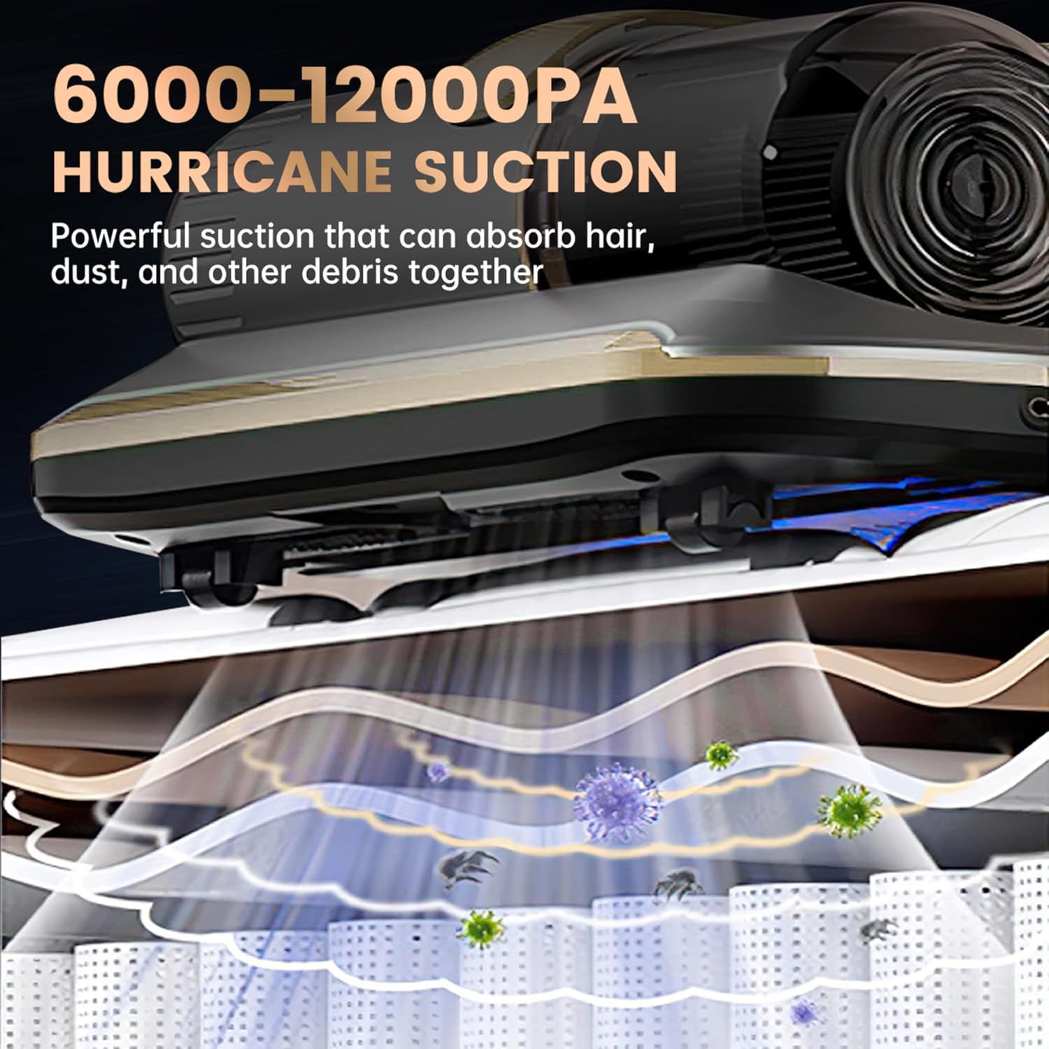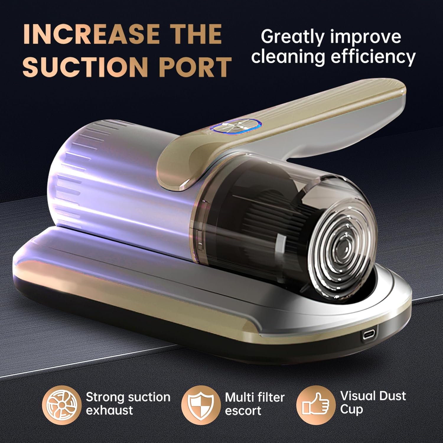 PATO Mattress Vacuum Cleaner, Wireless Handheld Bed Vacuum Cleaner With UV-C Light, HEPA Filter and Ultrasonic Vibration, 12KPa, Suitable for Beds, Sofas, Car Seats, Carpets (golden)